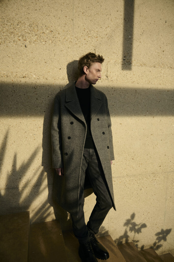 - Lainages traditionnels : Tweed, chevrons et cachemire double face apportent leur raffinement aux manteaux de la saison, combinant confort, légèreté et durabilité.