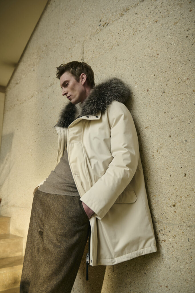 - Parkas et doudounes : Inspirées de l’univers militaire, elles se déclinent en nylon ou en lainage Loro Piana, avec des finitions en fourrure ou peau lainée pour allier technicité et confort.