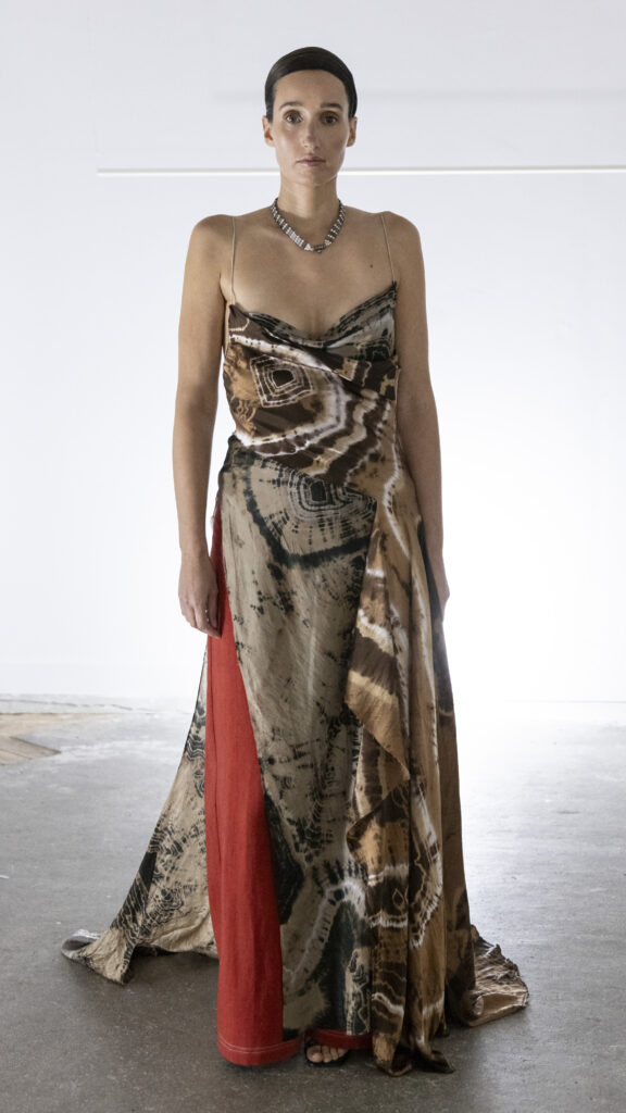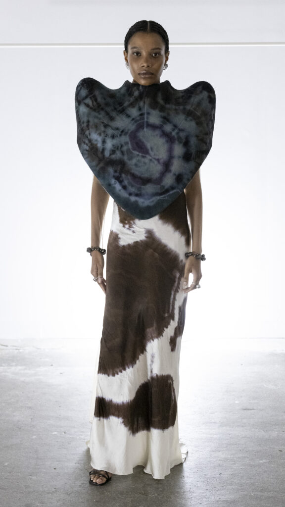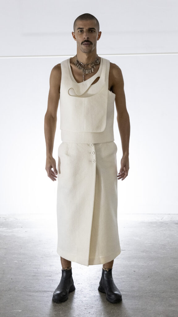 Fidèle à son identité, Bloni articule un dialogue entre histoire et futur, questionnant les politiques corporelles et les identités de genre à travers des créations audacieuses et inclusives. La collection reflète l’engagement de la marque pour une mode durable et culturellement accessible.