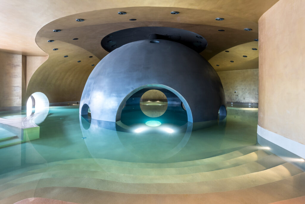 L’architecture byzantine, enrichie de touches zen, sublime ce sanctuaire de 45 chambres et suites minimalistes, où chaque détail, des matériaux naturels à la luminosité apaisante, invite à la contemplation. Le spa, véritable chef-d’œuvre de design sur quatre niveaux et 3500 m², constitue le cœur de l’expérience avec ses installations spectaculaires, dont une piscine sphérique et un hammam byzantin.