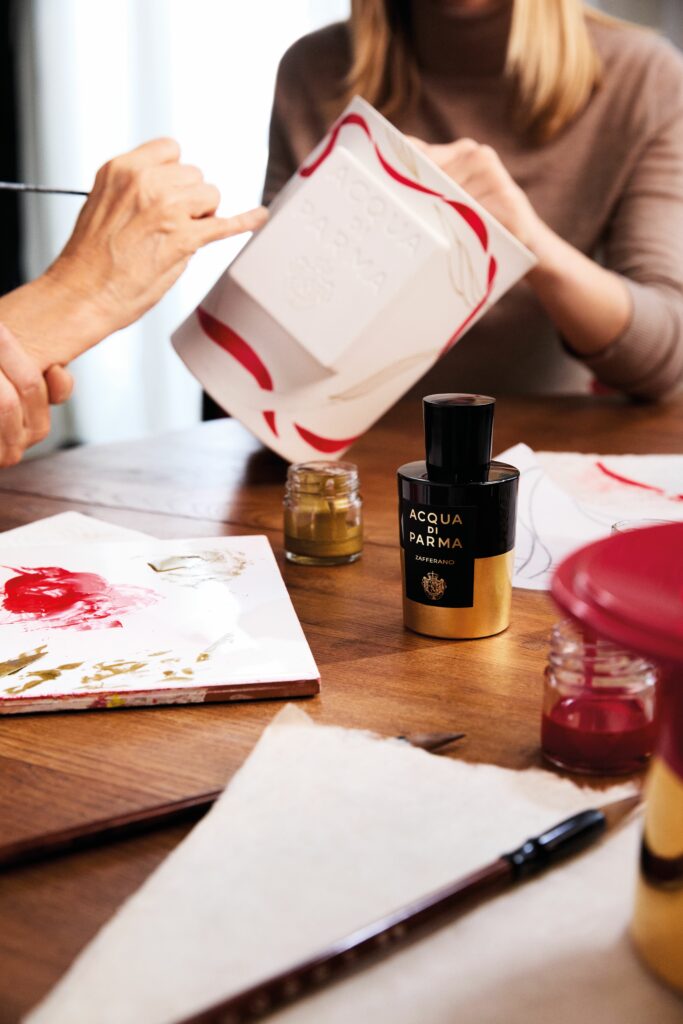 Ce dialogue entre deux univers olfactifs se poursuit avec les Eaux de Parfum Luce di Rosa et Zafferano, présentées dans des flacons en édition limitée. Le flacon de Luce di Rosa, à moitié laqué de bordeaux, évoque la passion et la sensualité, tandis que celui de Zafferano, revêtu d’or, symbolise la lumière et l’opulence. Les étuis, ornés du même motif « Legàmi » que la bougie, complètent cette expérience luxueuse avec une touche d’artisanat italien.