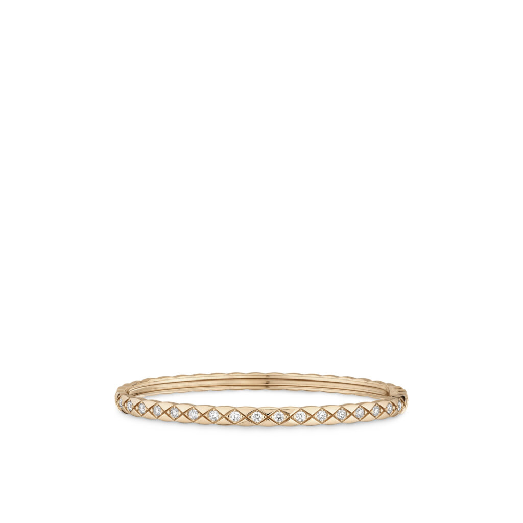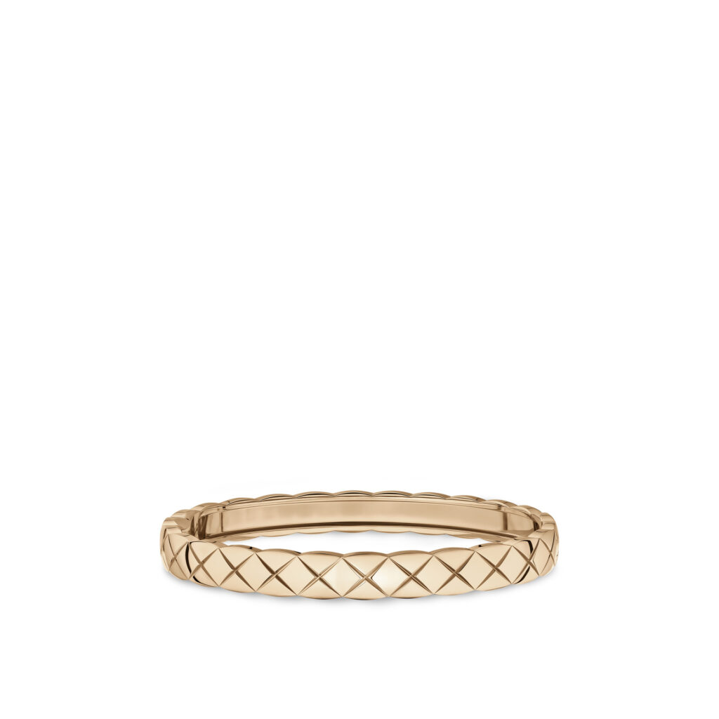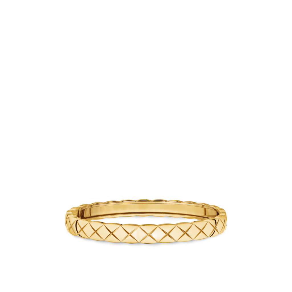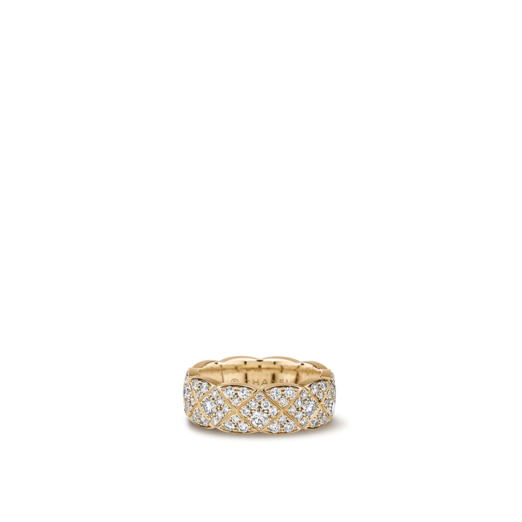 Inspiré par les vestes des lads sur les champs de courses et les couvertures des chevaux d’Étienne Balsan, amant de Gabrielle Chanel, le motif matelassé s’inscrit dans l’ADN de la Maison depuis les années 1920. Retranscrit dans l’or dès 2015 avec COCO CRUSH, il devient ici plus précieux que jamais. La rigueur du dessin contraste avec la rondeur du volume, dans une fusion parfaite entre force et douceur, maîtrise et spontanéité.