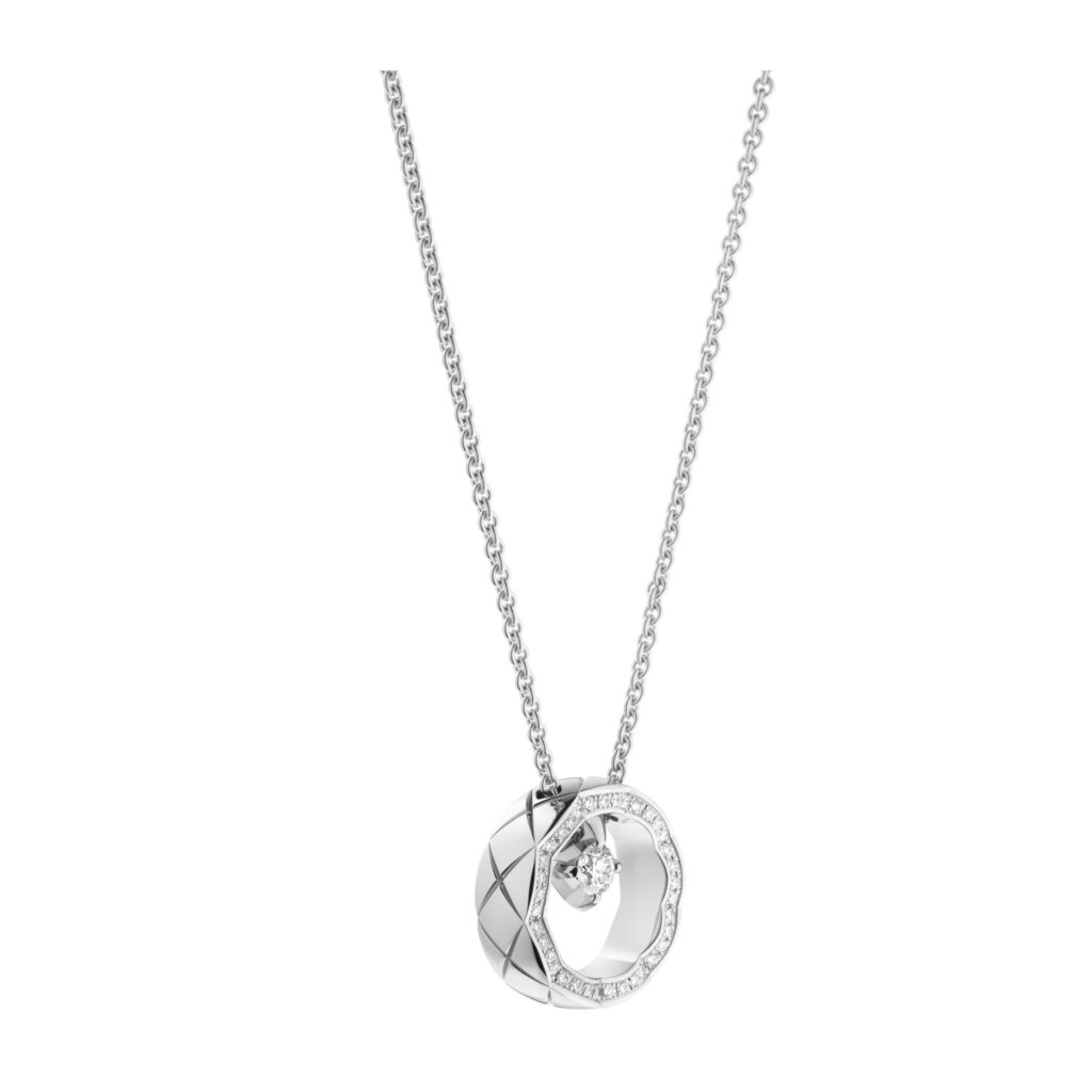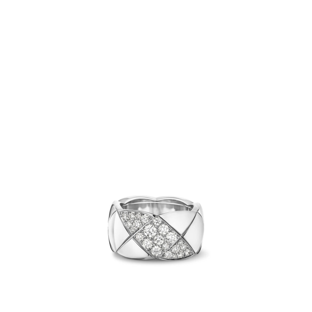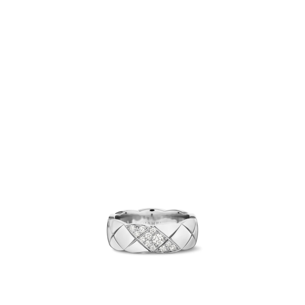 Pensée comme une ode à la légèreté et à l’accumulation, la collection s’enrichit de colliers, bracelets, boucles d’oreilles et bagues où le motif matelassé, signature intemporelle de CHANEL, se pare d’un éclat nouveau. Les rubis, subtilement logés dans les creux des lettres formant « C.O.C.O. », apportent un relief chromatique vibrant, transformant chaque pièce en un talisman à l’allure graphique et contemporaine.