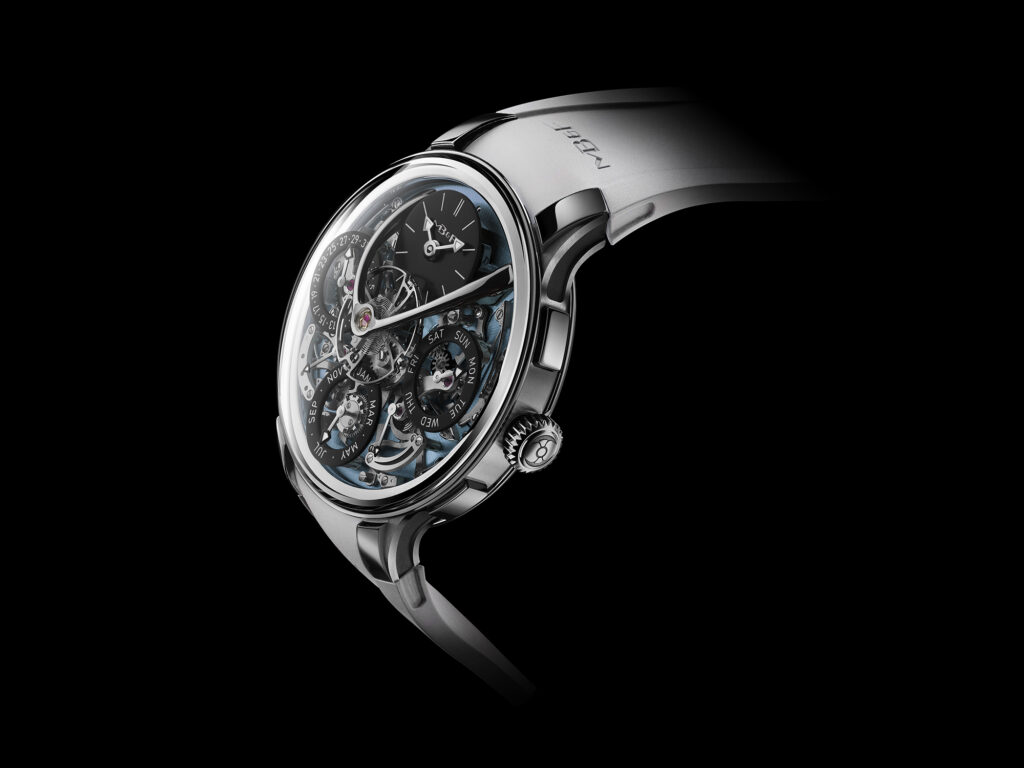 Dotée d’un boîtier de 44mm décliné en zirconium, titane ou or rose, la LM Perpetual EVO se distingue par :