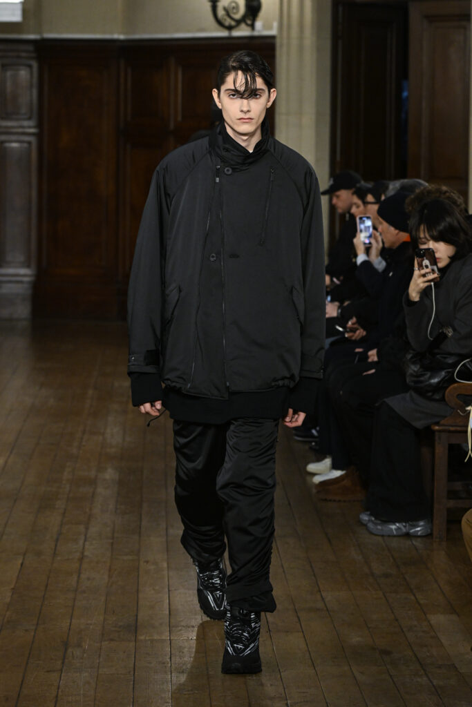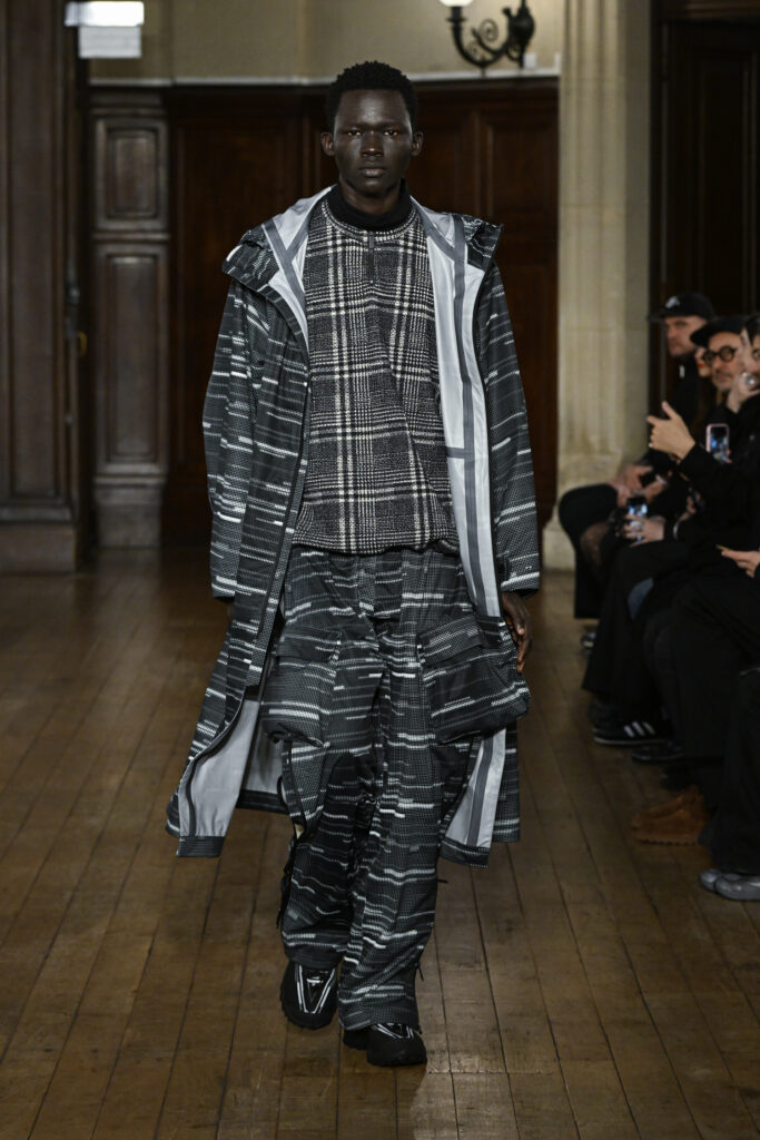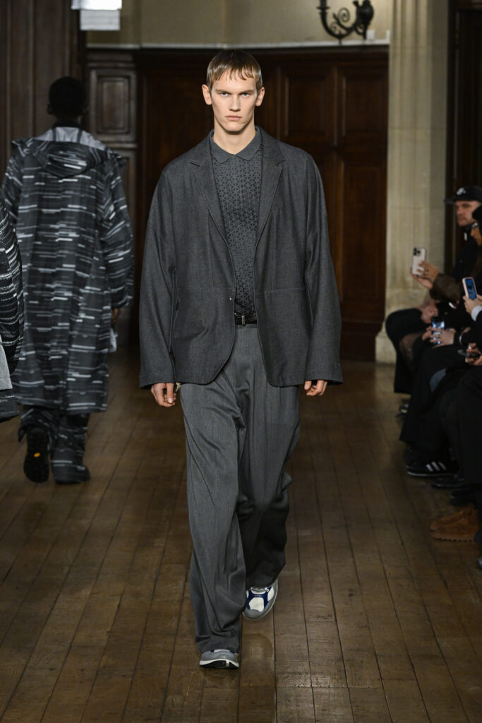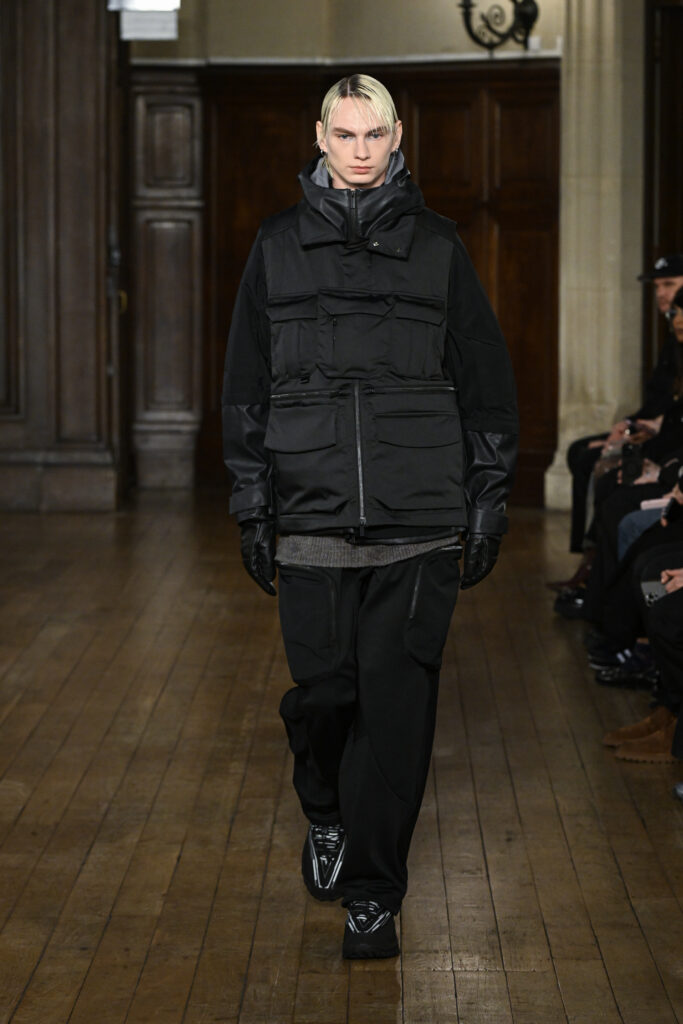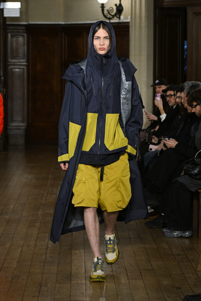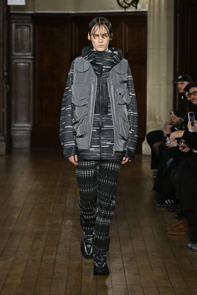 La collection Automne-Hiver 2025 de White Mountaineering sublime l’iconographie du brutalisme architectural en la transposant dans l’univers de la mode fonctionnelle. À l’instar du béton brut, des structures minimalistes et des matériaux exposés propres à ce courant architectural, chaque pièce reflète une philosophie où fonctionnalité et esthétique s’entrelacent.