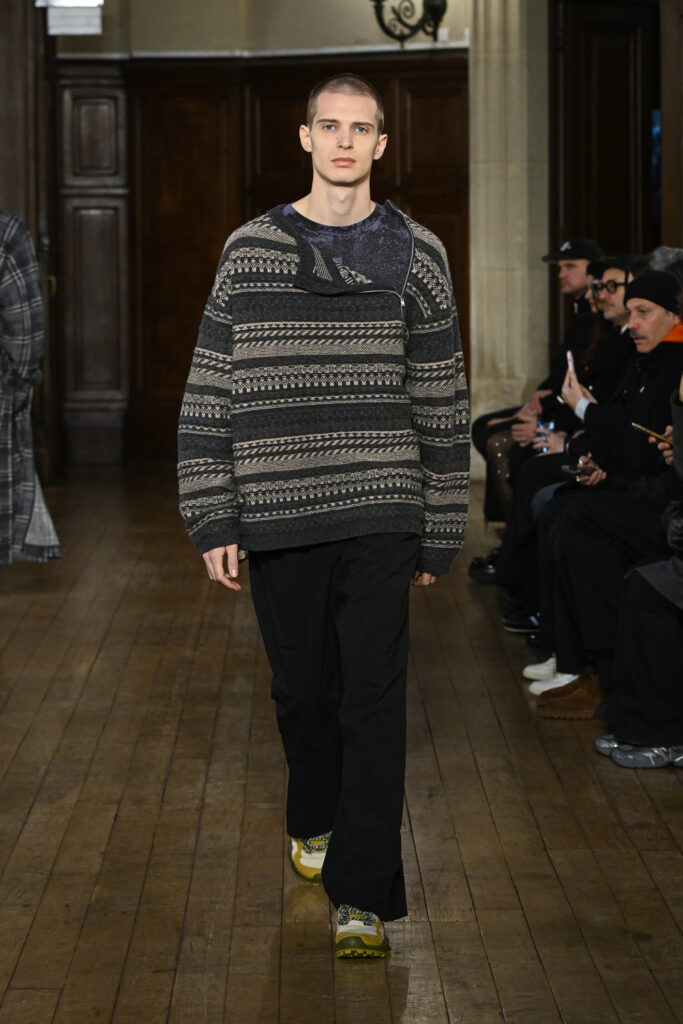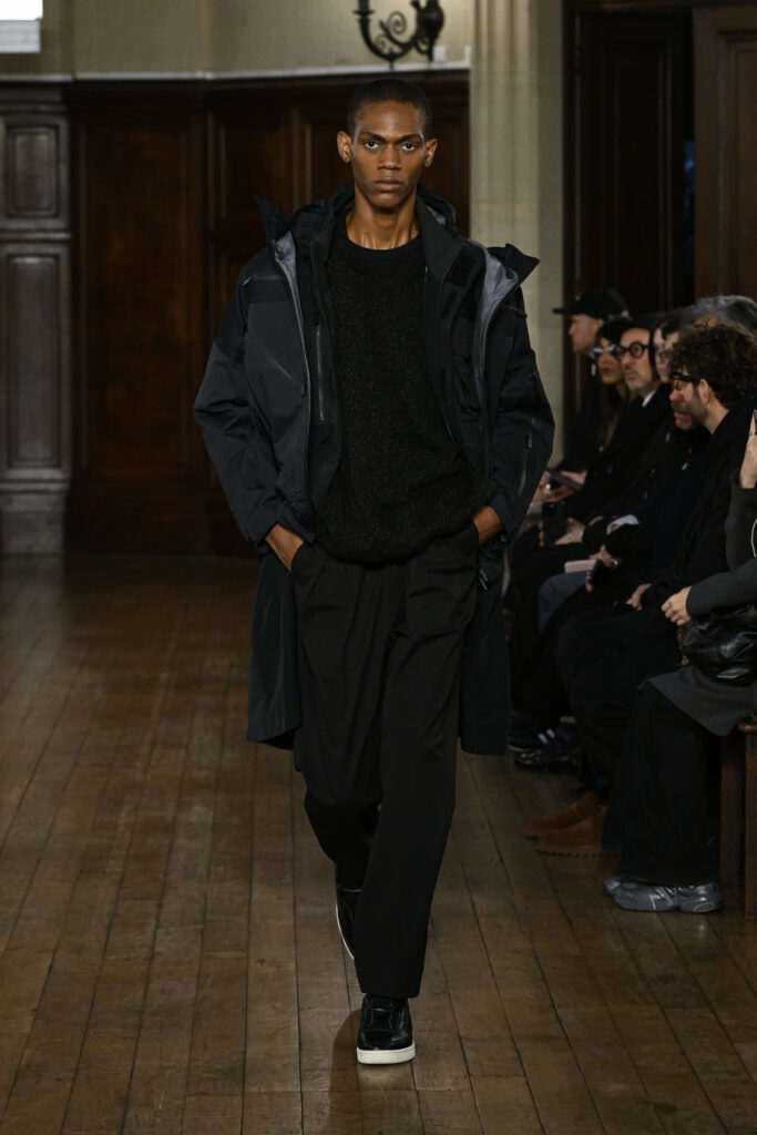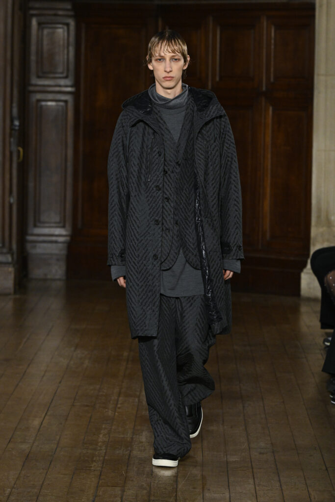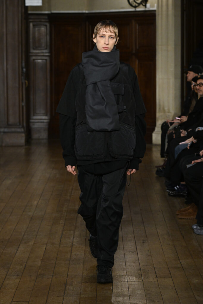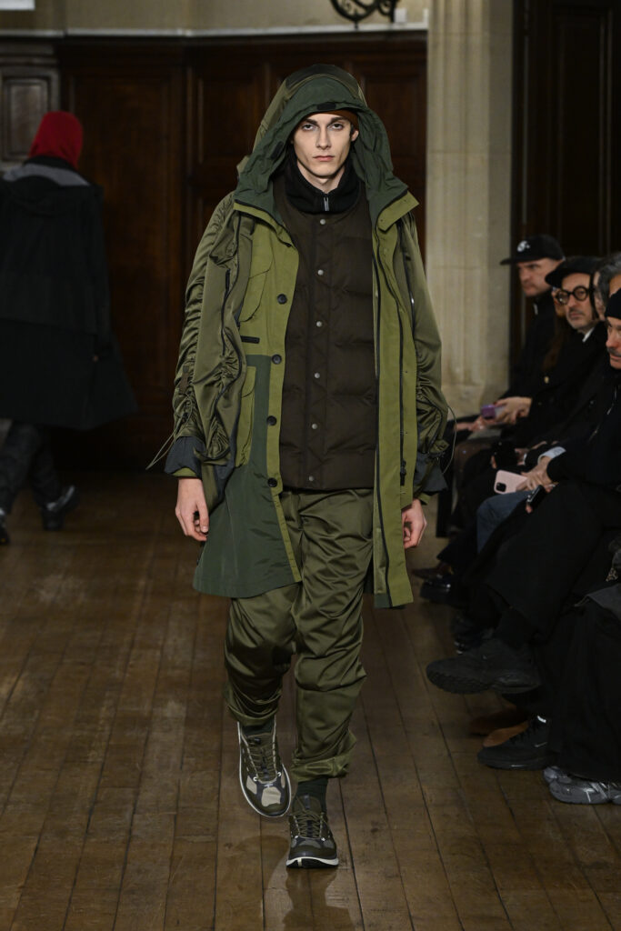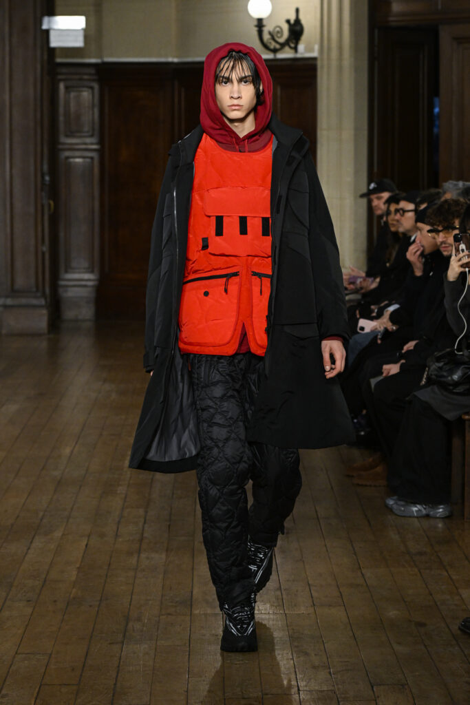 La collection Automne-Hiver 2025 de White Mountaineering sublime l’iconographie du brutalisme architectural en la transposant dans l’univers de la mode fonctionnelle. À l’instar du béton brut, des structures minimalistes et des matériaux exposés propres à ce courant architectural, chaque pièce reflète une philosophie où fonctionnalité et esthétique s’entrelacent.