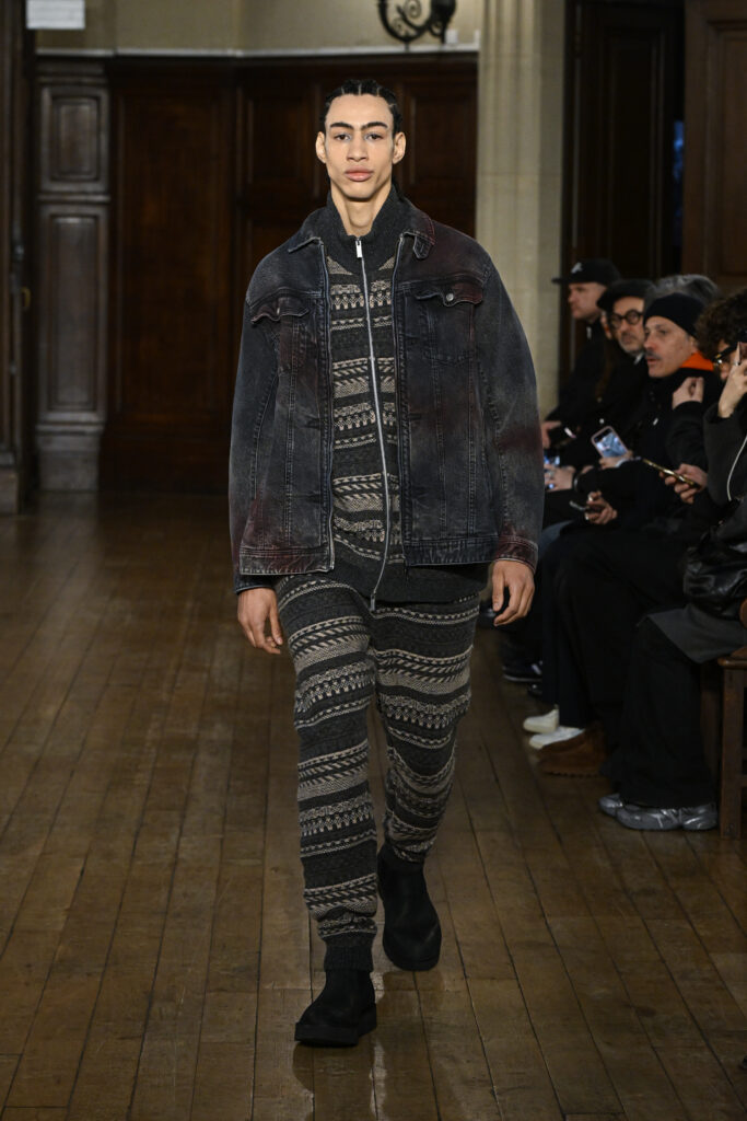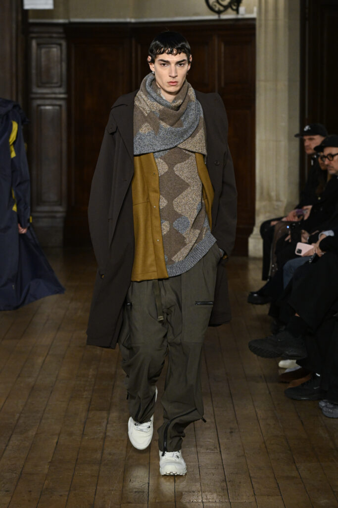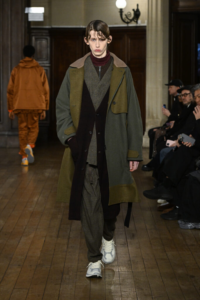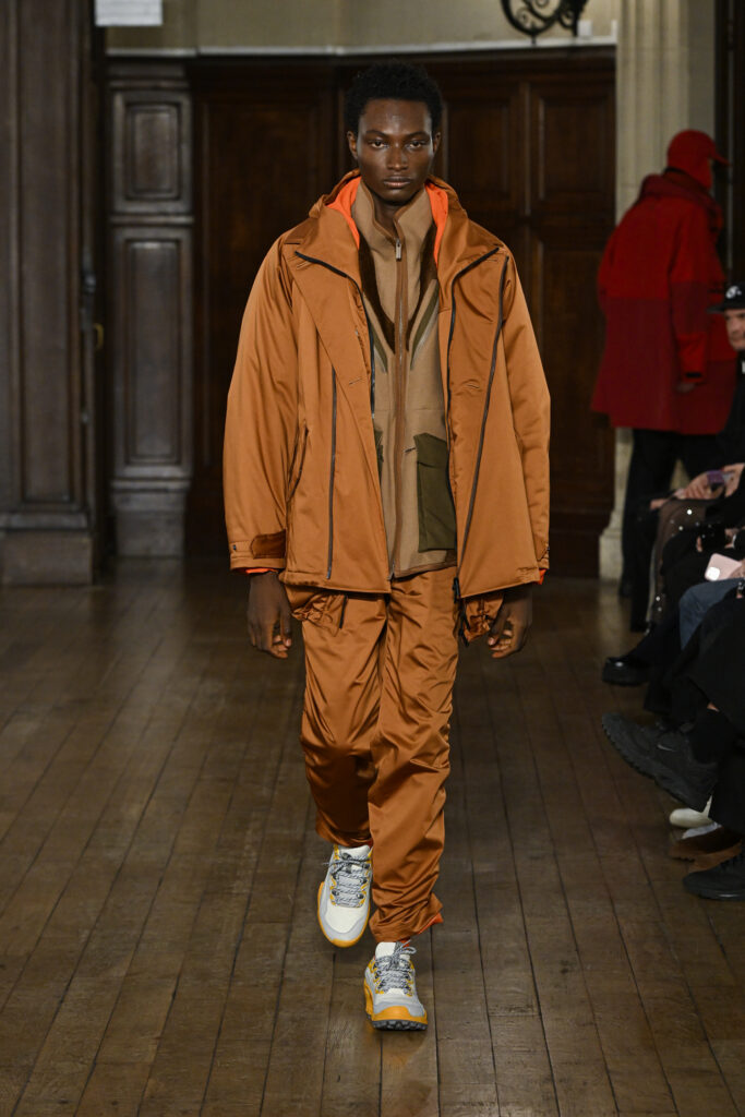 Dans cette collection, les lignes épurées et les matières brutes occupent le devant de la scène. Inspirée par le béton brut – un concept central du brutalisme – White Mountaineering fusionne des matériaux techniques, tels que le Gore-Tex, avec des fibres naturelles comme le denim et la laine. Le vieillissement des matières, leur patine au fil du temps, devient ici une signature visuelle, à l’image de l’érosion naturelle du béton.
