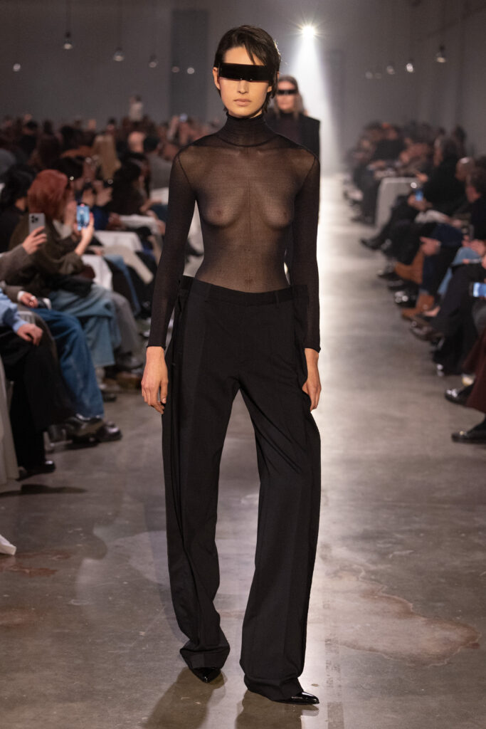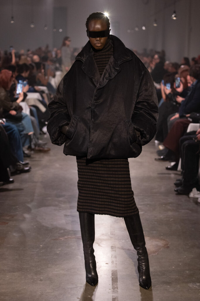 Ici, chaque vêtement n’est pas seulement une pièce figée mais une structure en mouvement, capable de se réinventer selon l’intention du porteur. En jouant sur les notions d’élargissement et de rétrécissement, MM6 inscrit son Automne-Hiver 2025 dans un espace où la mode devient un dialogue entre le vêtement et celui qui l’habite.