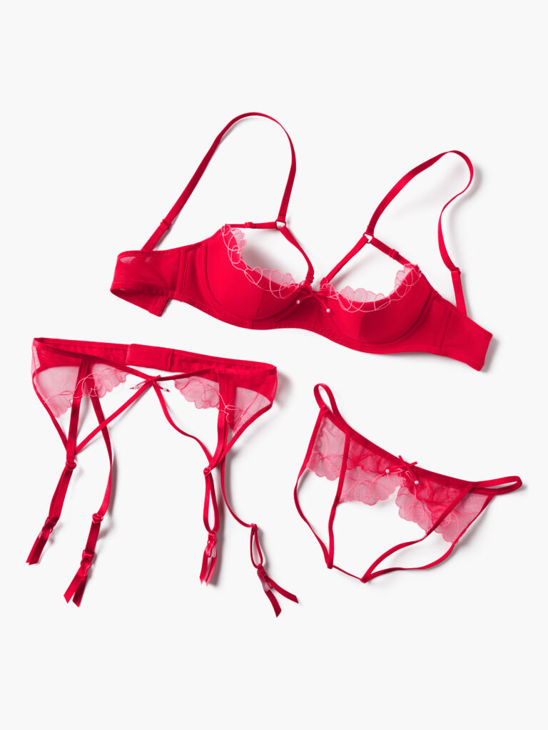 - Catch Me Cupid : Des pièces spectaculaires comme des culottes ouvertes et des cache-tétons en satin.