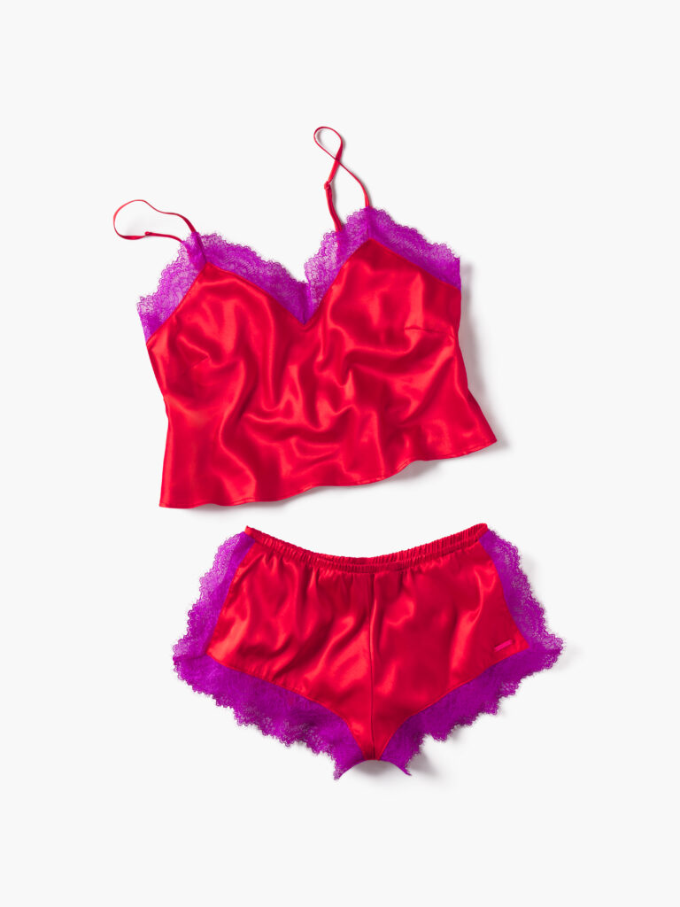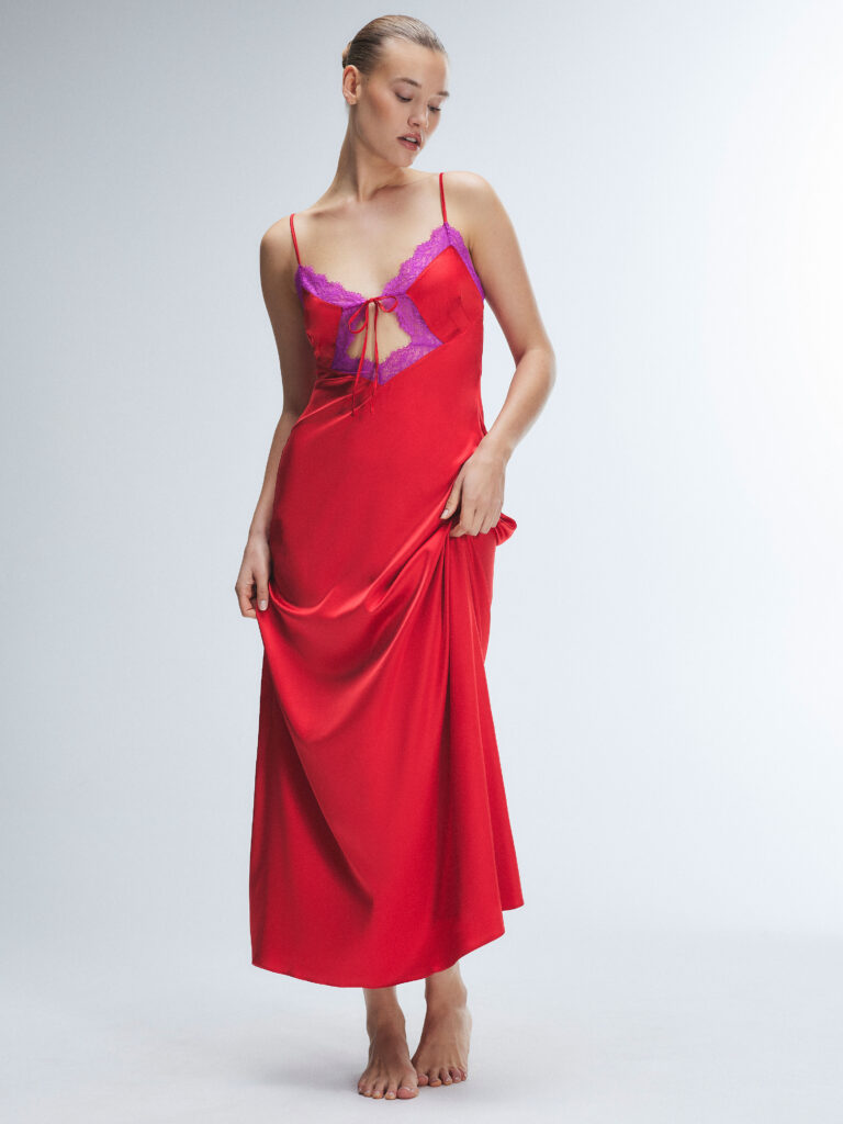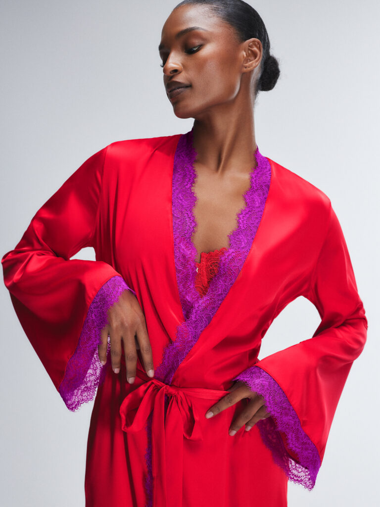 - Fire and Desire : Une collection satinée et sensuelle incluant des robes longues et des peignoirs de nuit.