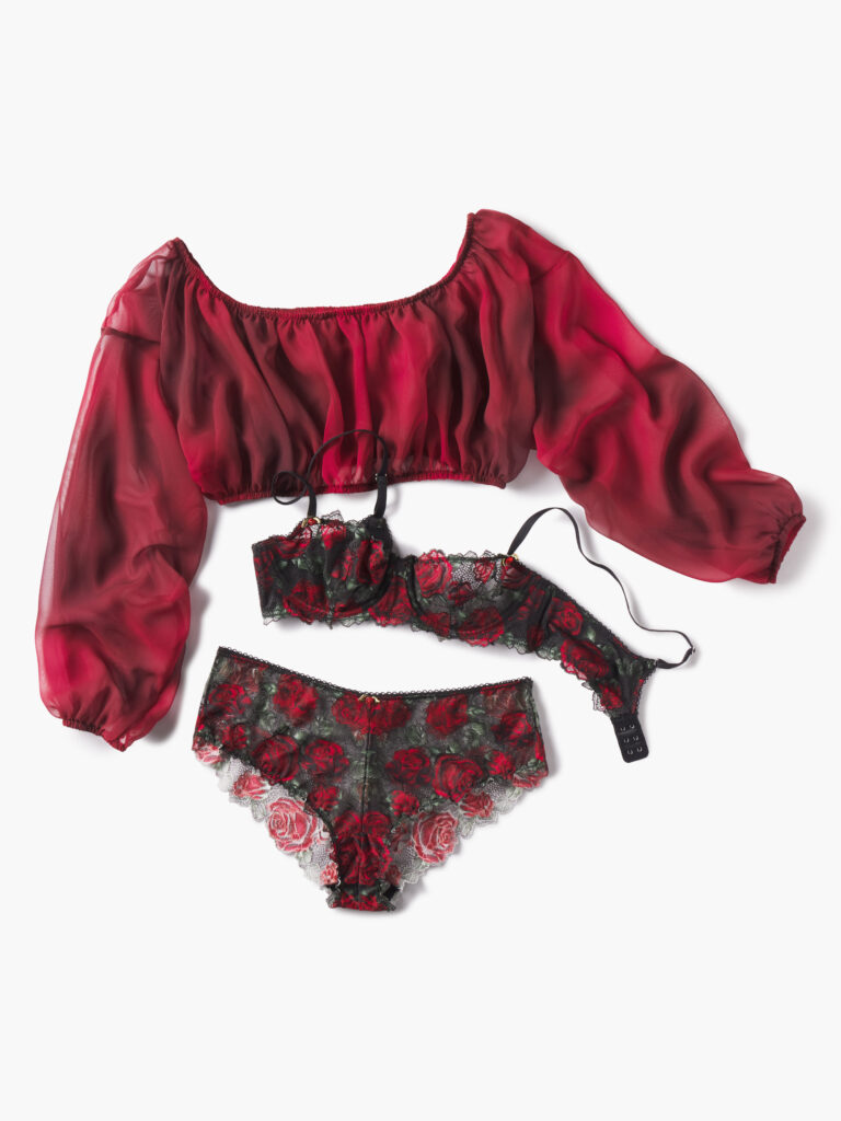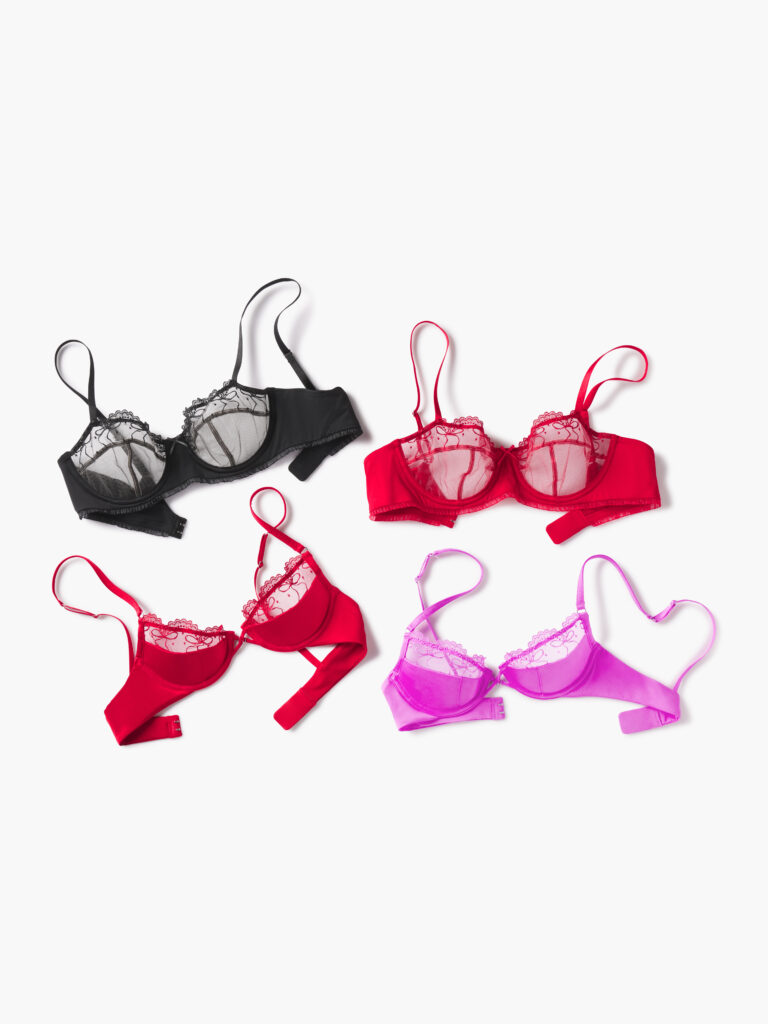 - Loveline : Un mélange de satin et dentelle aux détails audacieux. Parfait pour une allure sexy et ludique. Disponibles en noir, rouge et violet.