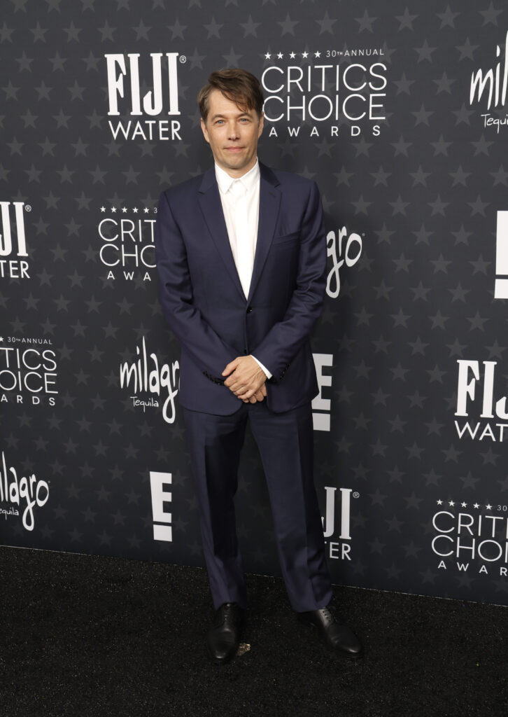 Le réalisateur Sean Baker, fidèle à une allure plus décontractée mais toujours maîtrisée, a choisi un costume bleu marine à revers cranté, sublimé par une chemise immaculée et des souliers noirs.