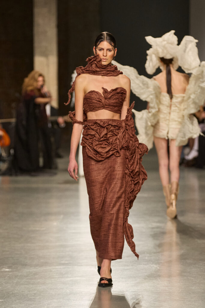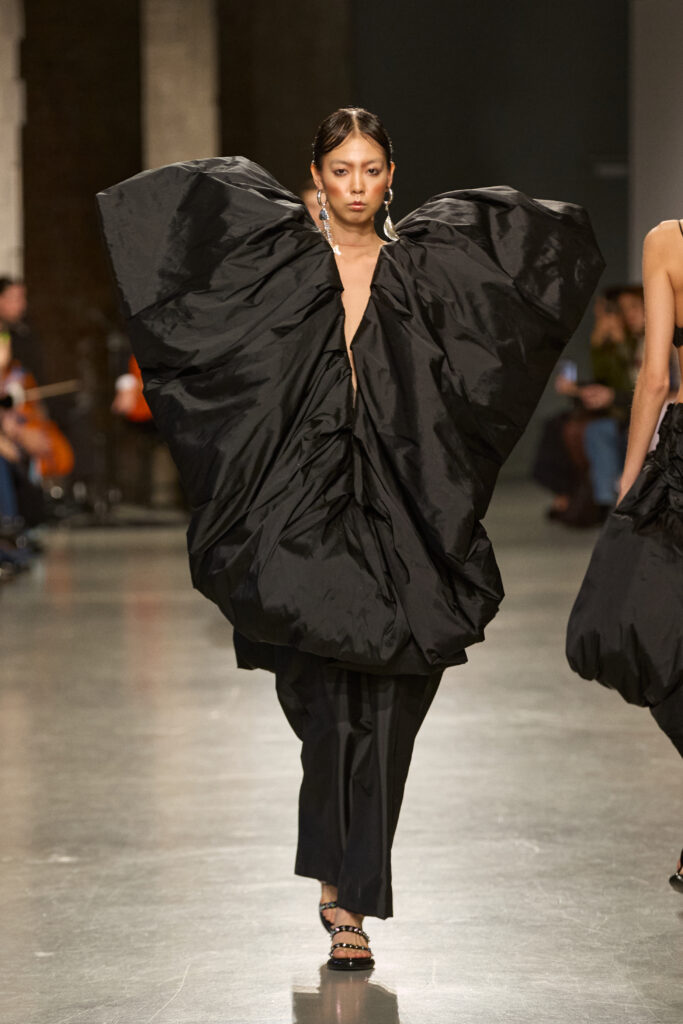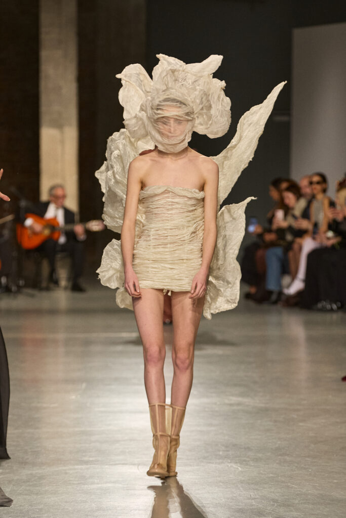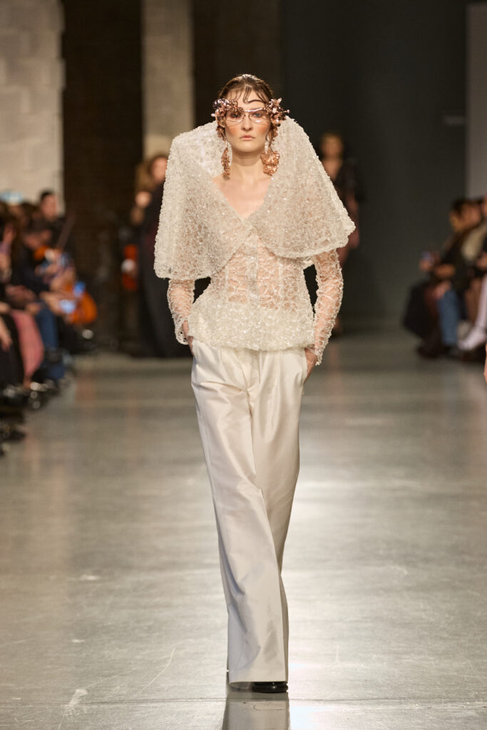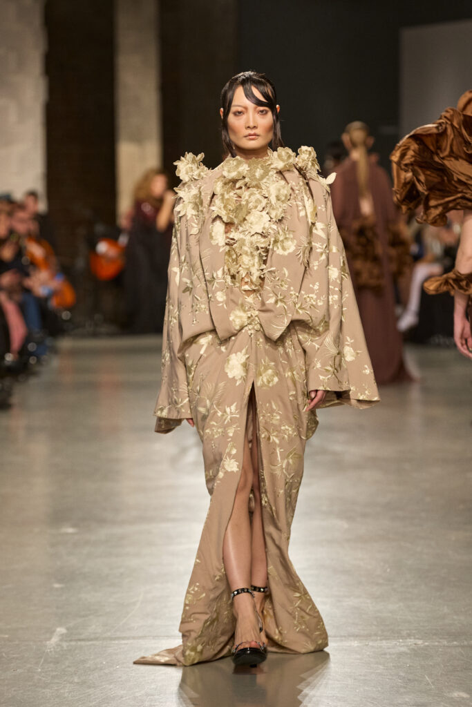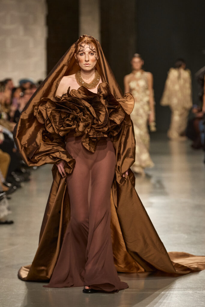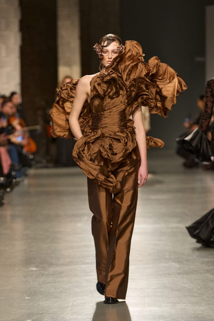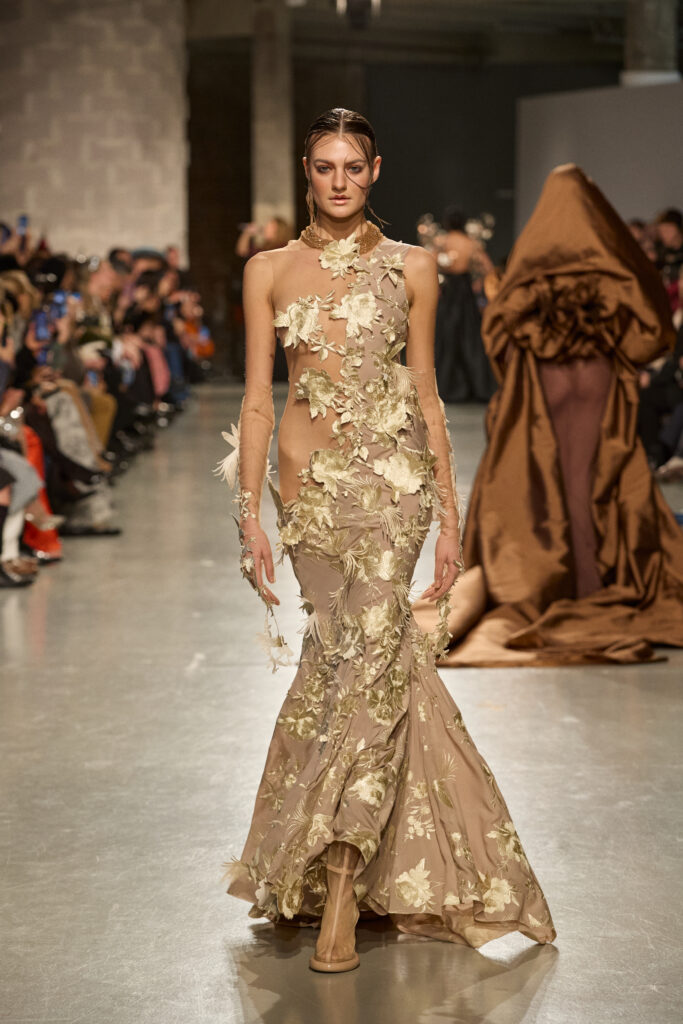 C’est au Saut du Loup du Palais de Tokyo que la créatrice andalouse Juana Martin, première créatrice espagnole à intégrer le calendrier officiel de la Haute Couture Paris depuis 2022, a dévoilé sa collection Identitad, un hommage à ses racines et au flamenco, réinterprété avec une modernité éclatante.