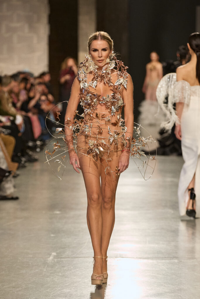 Ses pièces sont la preuve d’une maîtrise absolue du jeu de transparence, où l’effet peau nue se mêle avec raffinement à l’équilibre entre le déshabillé et l’habillé, tout en sublimant des volumes généreux avec une élégance sans pareil.