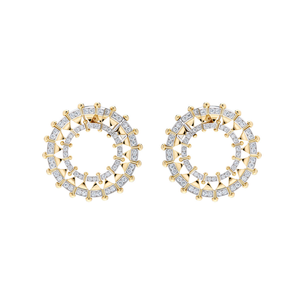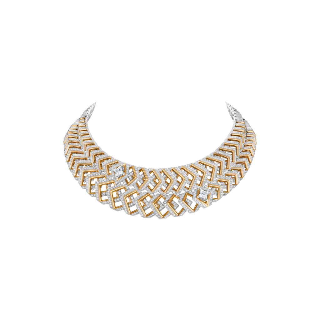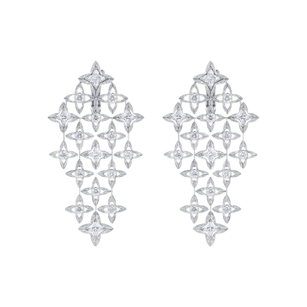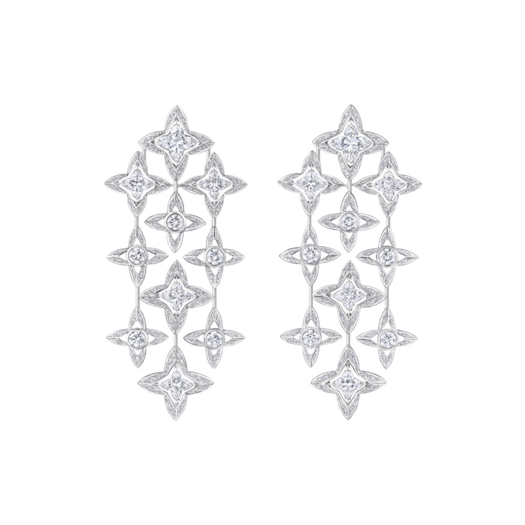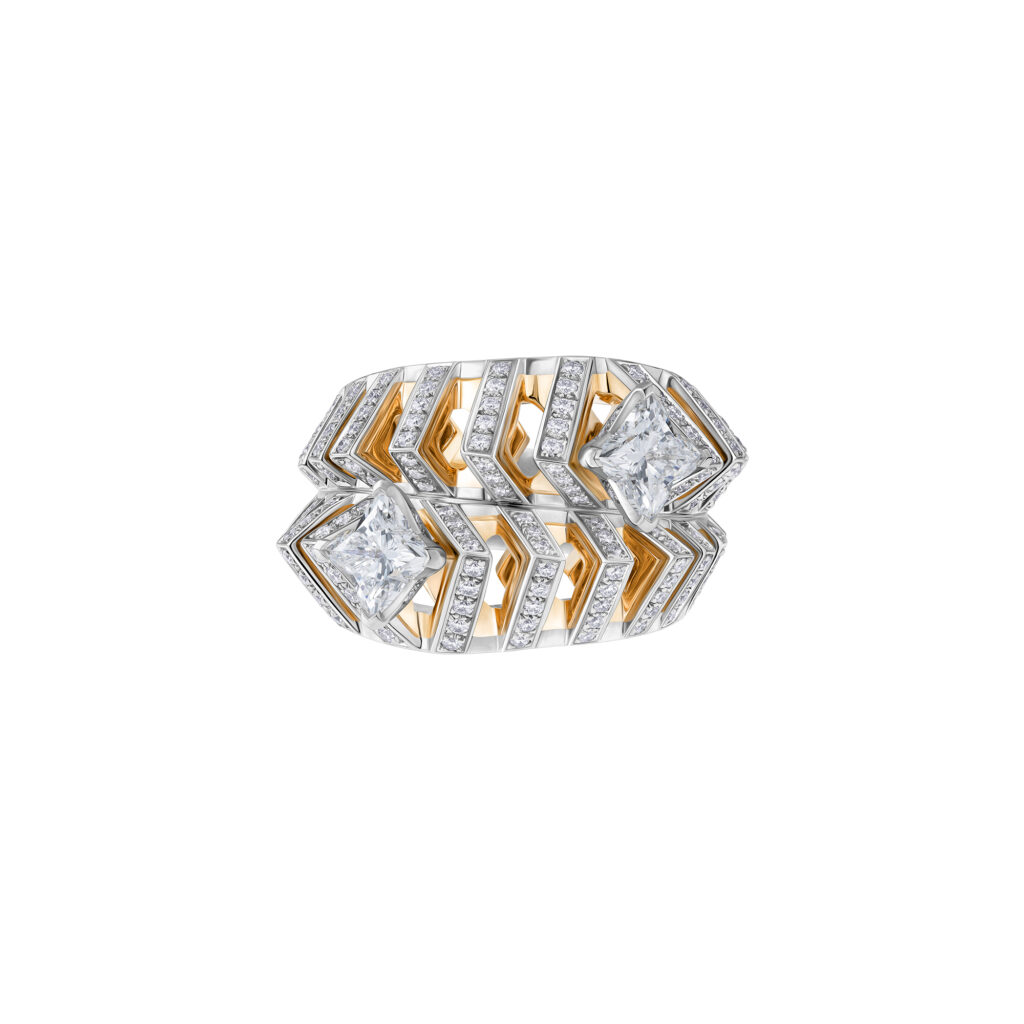 - Dynamisme : une suite de créations où l’emmaillement bicolore électrise le motif chevron, ponctué de diamants LV Monogram Star.