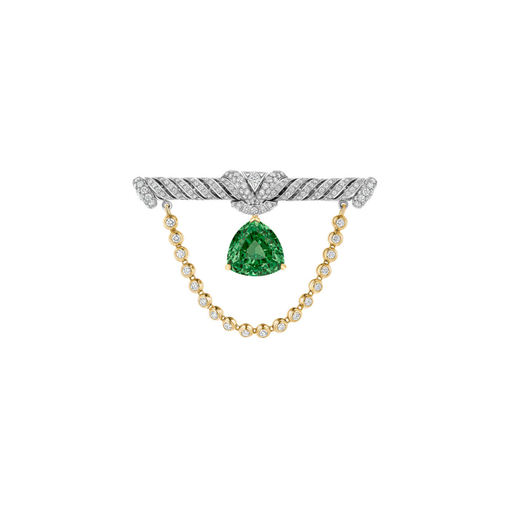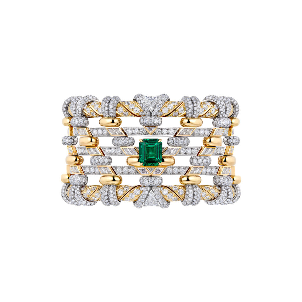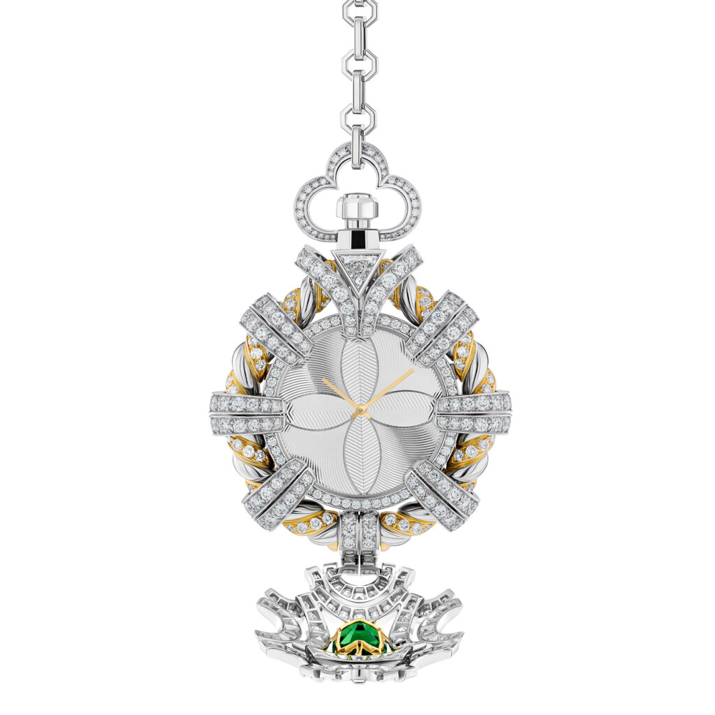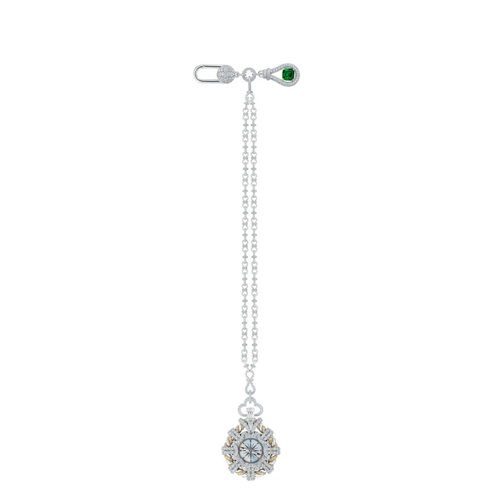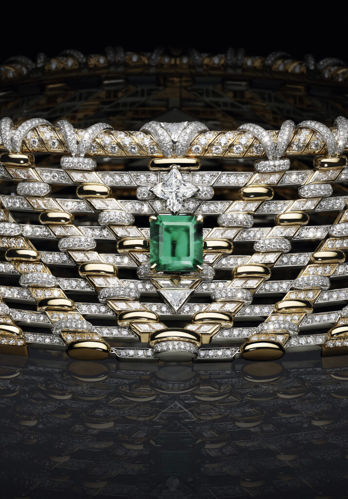 - Phénoménal : un hommage à l’art de la porcelaine avec un collier en maillage ajouré, sublimé d’une émeraude colombienne de 7,44 carats et d’un diamant LV Monogram Star.