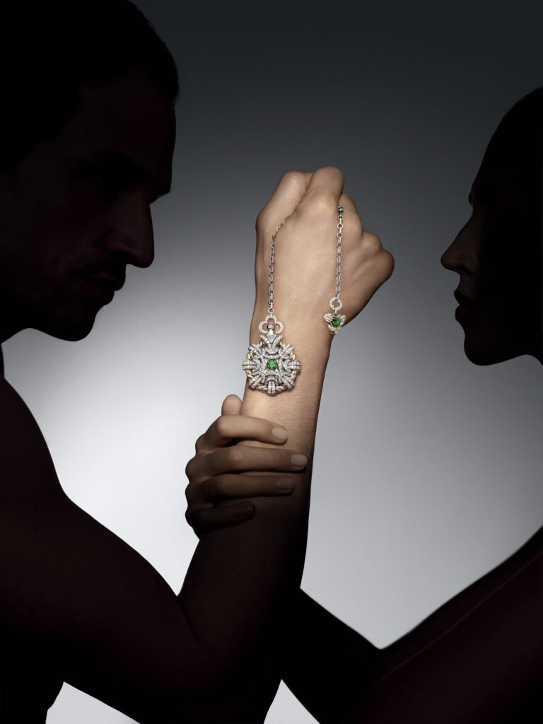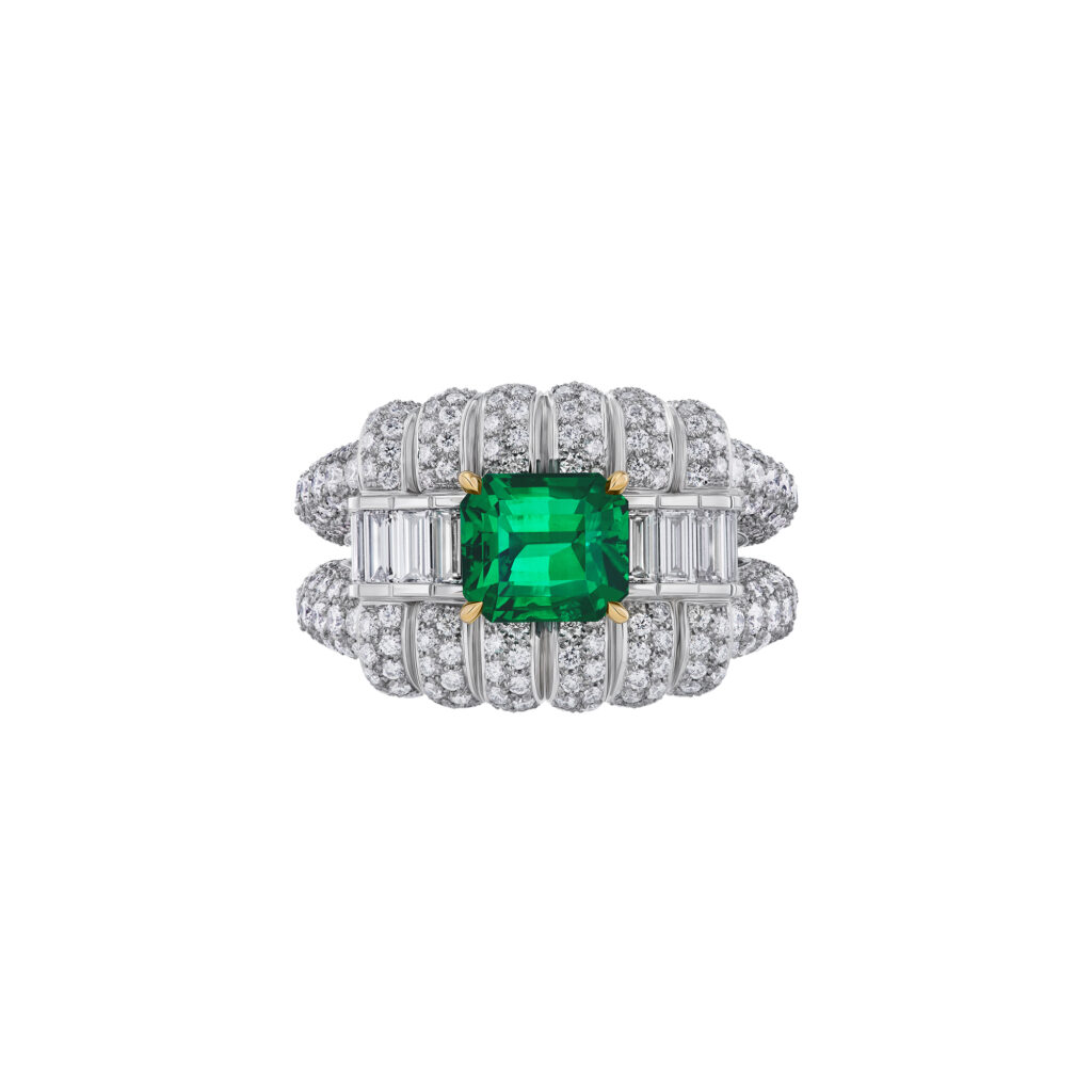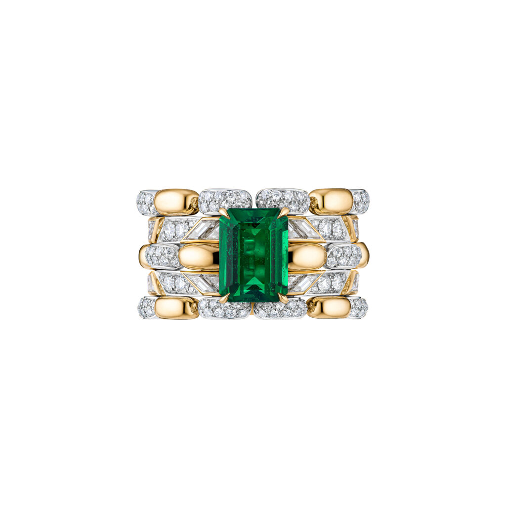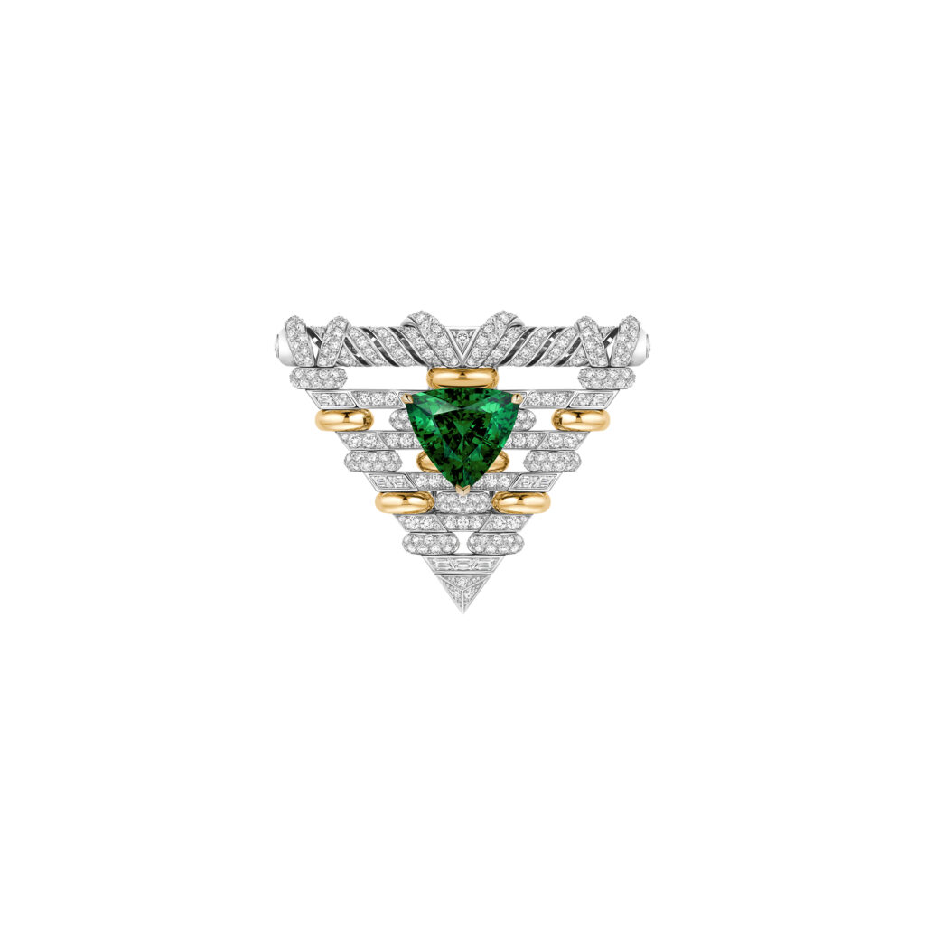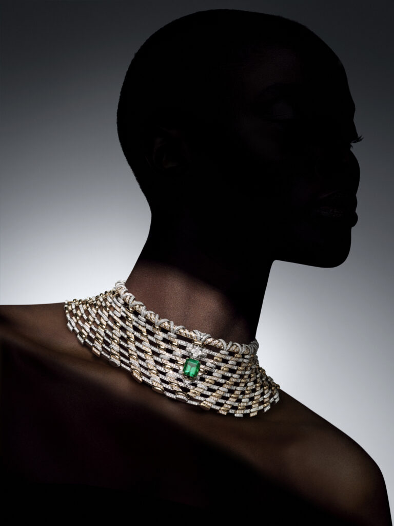 - Phénoménal : un hommage à l’art de la porcelaine avec un collier en maillage ajouré, sublimé d’une émeraude colombienne de 7,44 carats et d’un diamant LV Monogram Star.