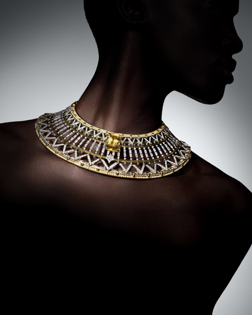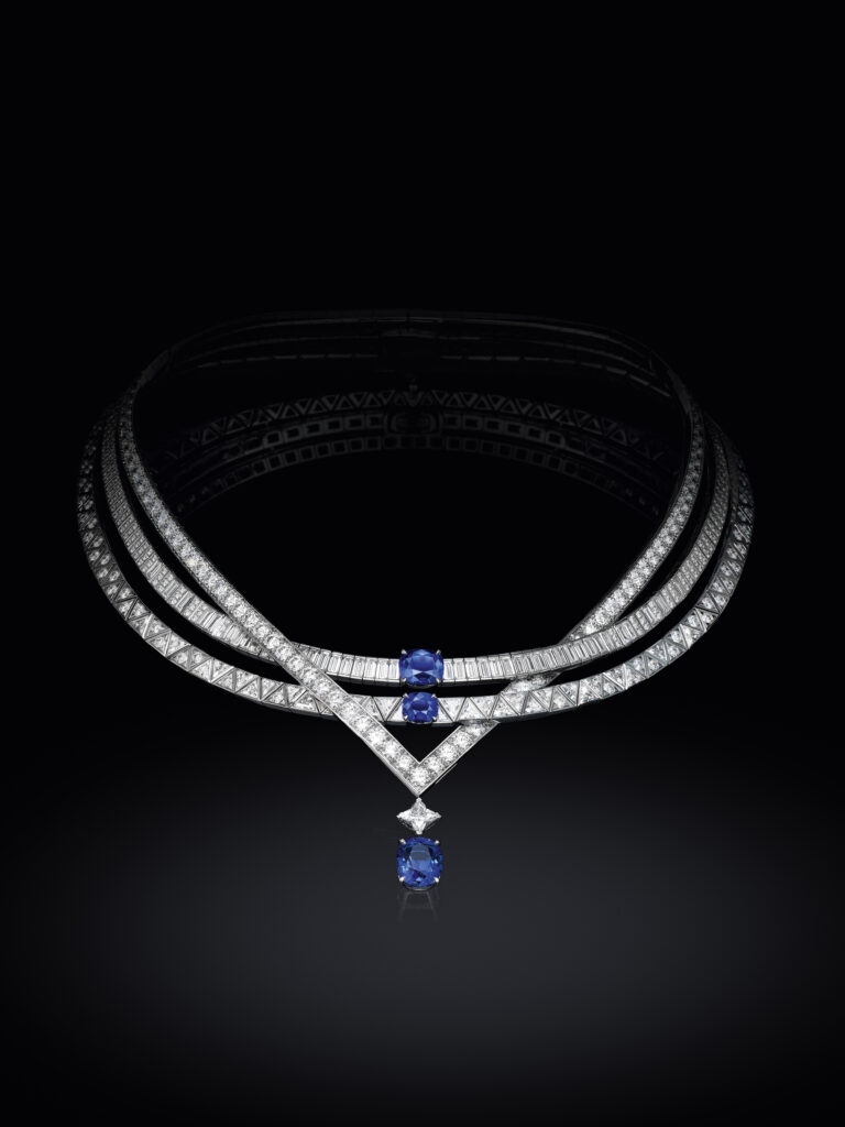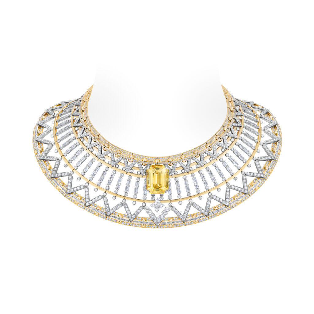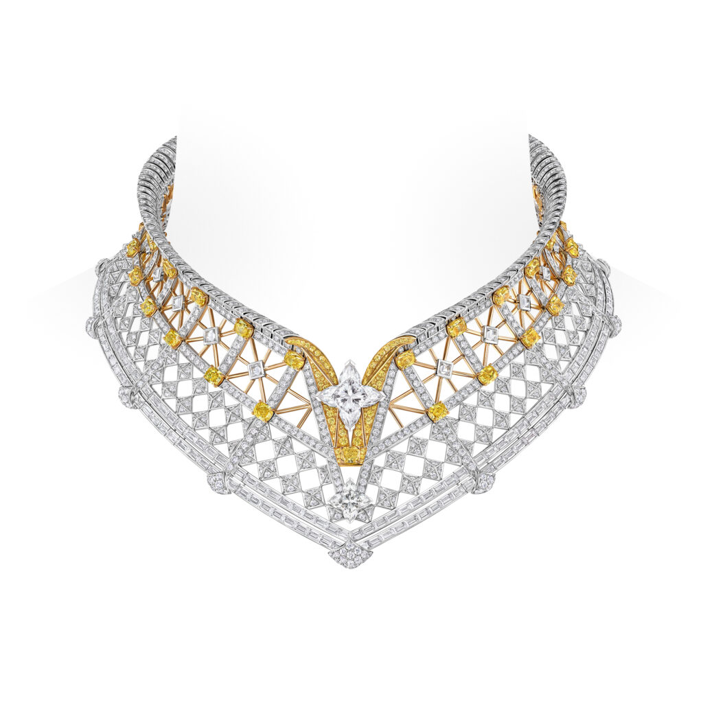 - Vision : un collier magistral où un saphir jaune de 50,01 carats rencontre un diamant taille LV Monogram Star, évoquant la révolution industrielle.