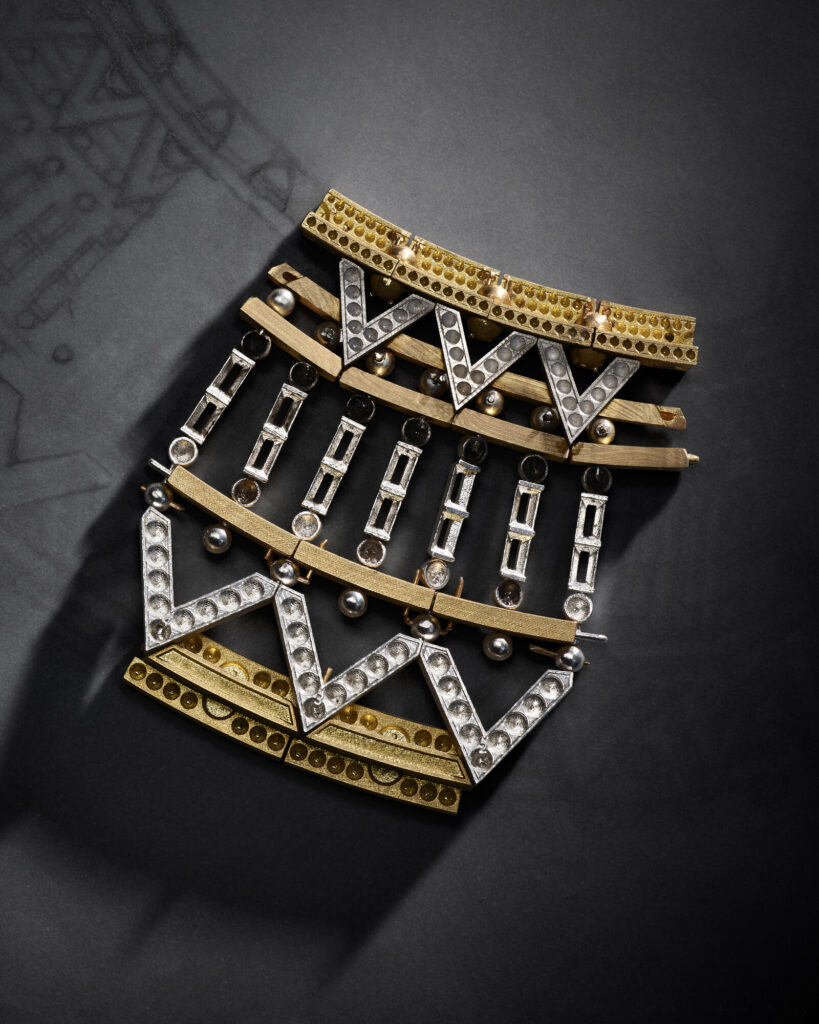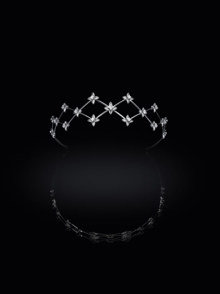 - Élégance : une tiare architecturale et un bracelet transformable, mettant en scène la géométrie et le raffinement du XIXᵉ siècle.