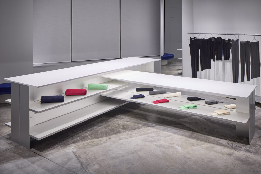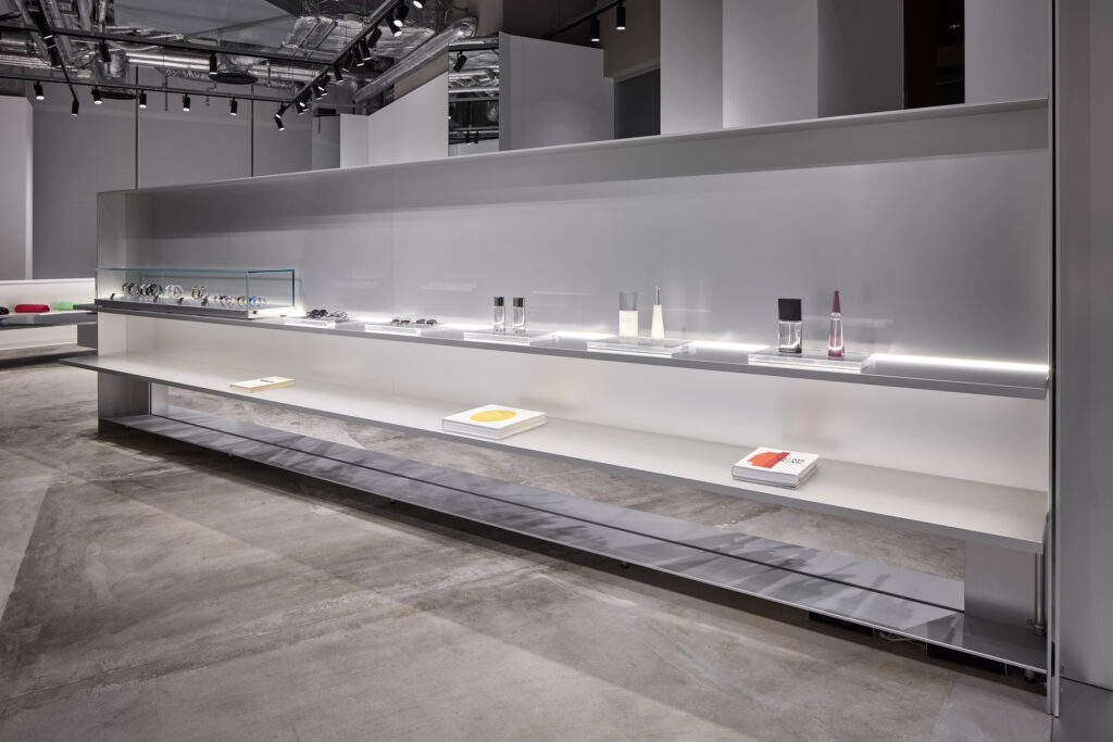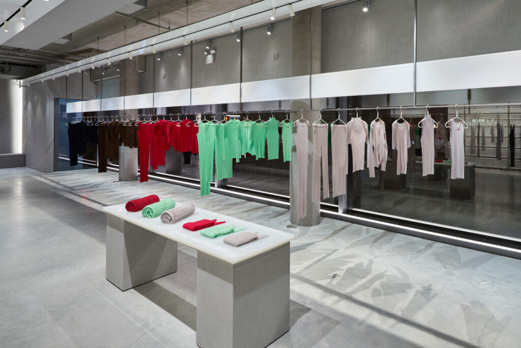 Avec ses 2 224 m² d’espace commercial, la boutique reflète l’identité de la marque : innovation et accessibilité. Conçu par MOMENT, cabinet japonais de design, cet espace s’impose comme une œuvre architecturale où chaque détail magnifie la technicité des célèbres plissés d’ISSEY MIYAKE. Une façade de 18 mètres de haut célèbre cette prouesse, intégrant harmonieusement une approche industrielle brute et une esthétique raffinée, signature de l’esprit Nolita.