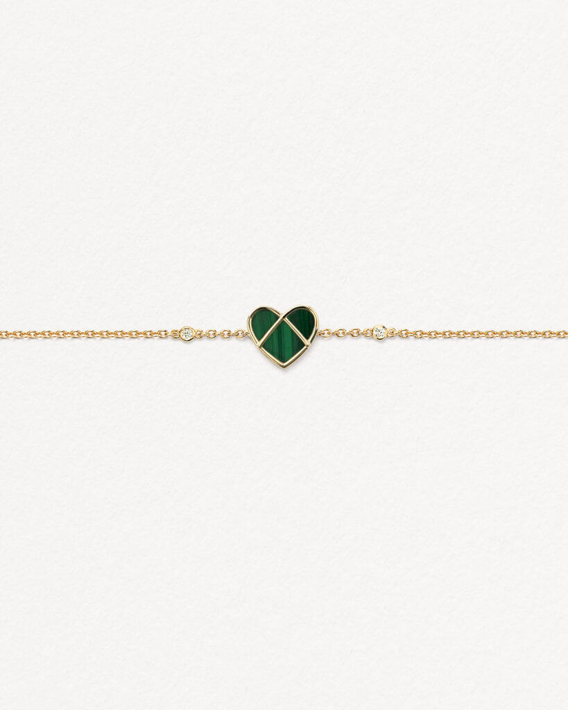 - Bracelet L’Attrape-Cœur en or jaune et malachite : 1 750 €