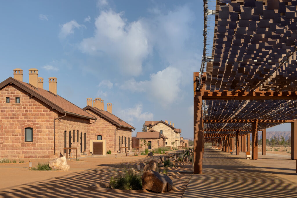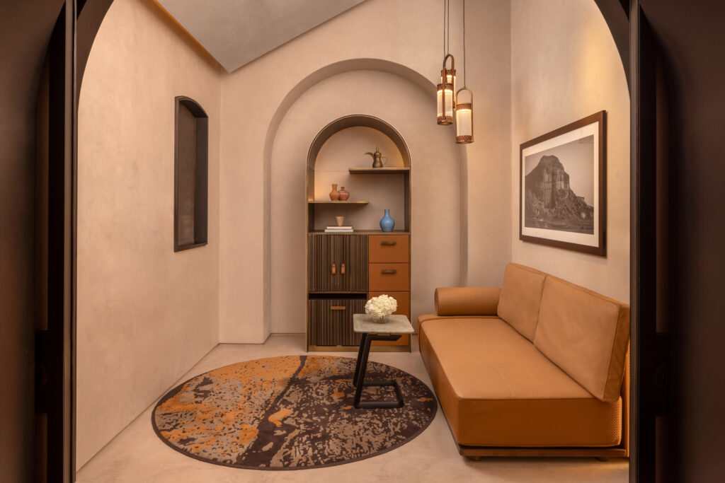 Avec ses 35 chambres, suites et villas, l’hôtel offre des vues spectaculaires sur le désert et la nécropole d’Hegra. Les matériaux locaux et les murs en pierre d’origine ont été soigneusement intégrés, préservant l’essence du site tout en offrant des équipements contemporains tels que des piscines à débordement et des terrasses privées.