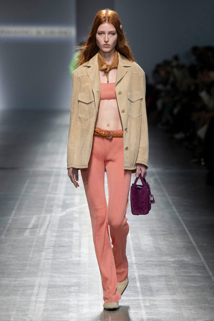 - Blazers corsetés : La silhouette sablier est revisitée avec des vestes à double boutonnage, soulignant la taille et rehaussant les épaules dans un jeu de géométries adoucies.
