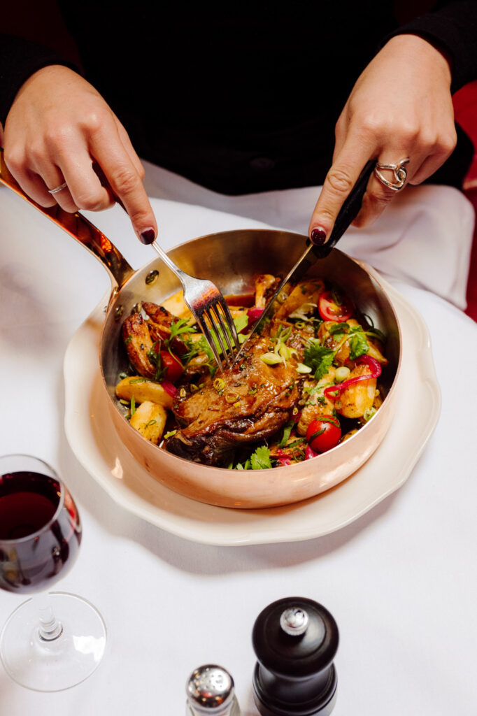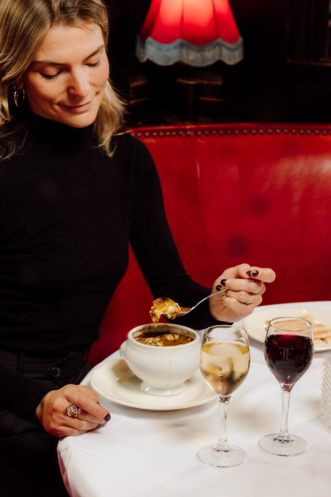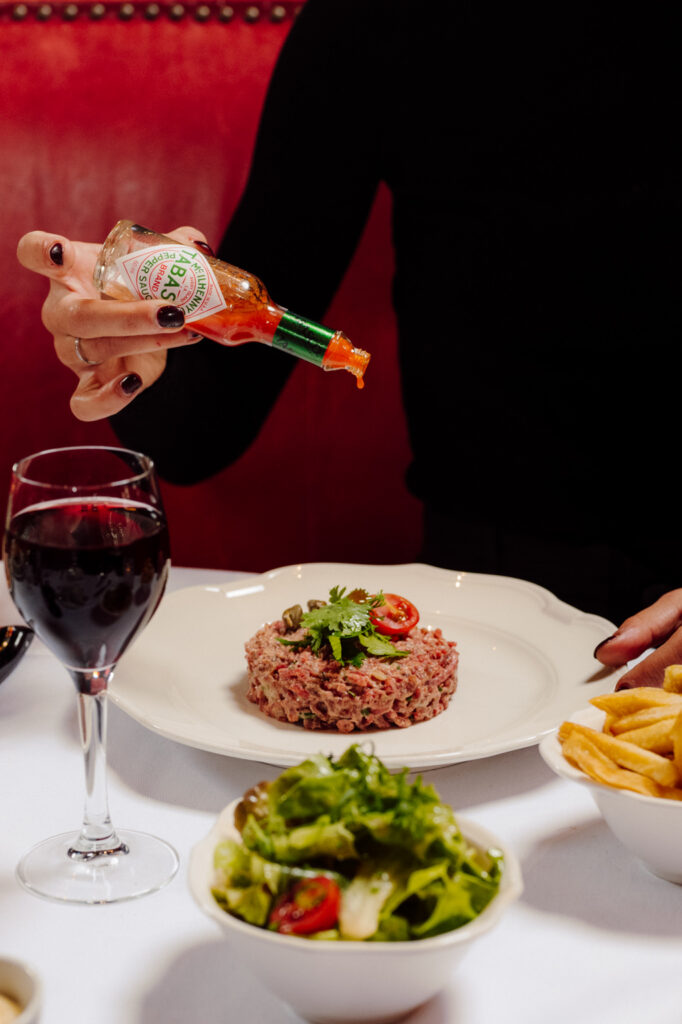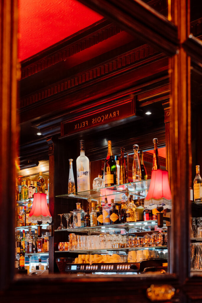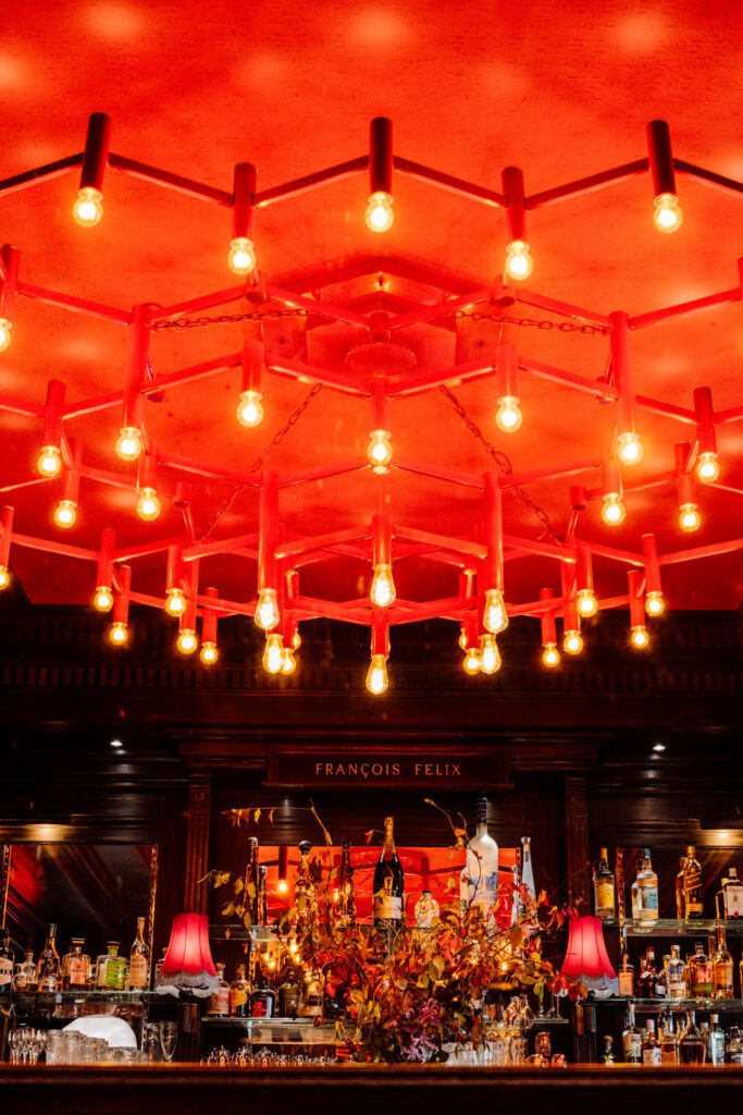 Dès l’entrée, la façade colorée de François Felix donne le ton : un univers chaleureux et accueillant. À l’intérieur, l’ambiance cosy, sublimée par des boiseries élégantes et des lumières tamisées, invite à la détente. Et que dire des banquettes en cuir rouge et du bar à cocktails où les créations maison rivalisent de créativité et de finesse ?