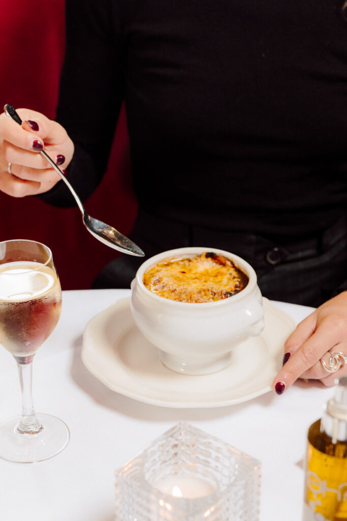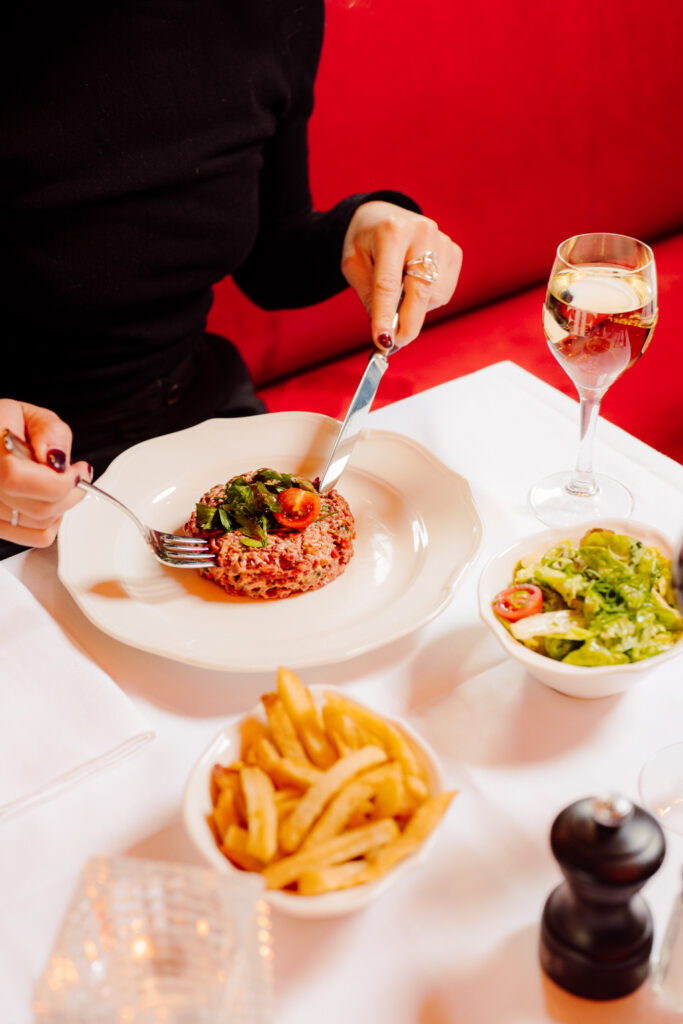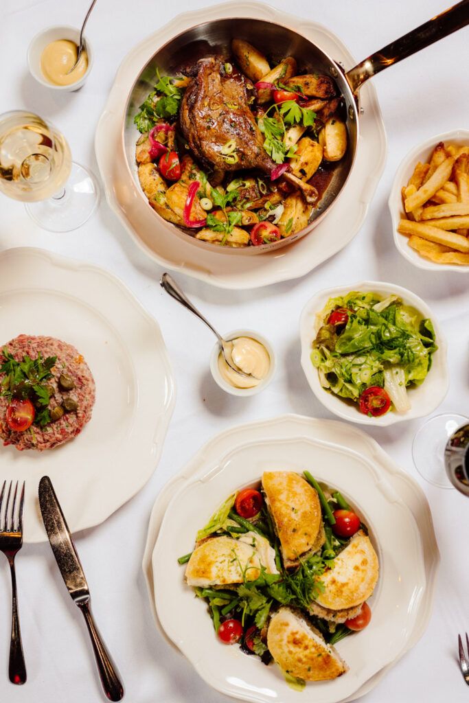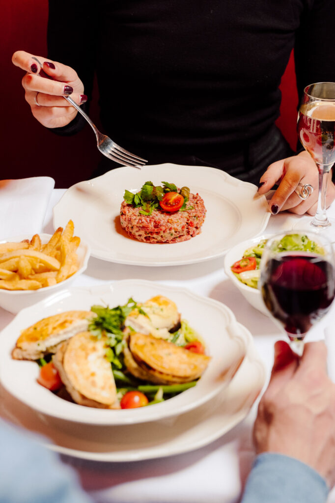 La carte, guidée par la saison et le plaisir, offre des plats réconfortants aux accents cosmopolites. Nous avons commencé par les ravioles de Royan gratinées, fondantes et généreuses, avant de savourer un filet de bœuf à la sauce poivre, accompagné de frites maison. Chaque bouchée révélait une maîtrise parfaite des saveurs.