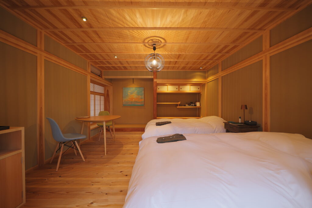 Situé dans une ancienne brasserie de saké au cœur du quartier historique de Hirata, cet établissement rend hommage à l’héritage artisanal de la région. Chaque chambre, nommée en référence au saké, invite les visiteurs à s’immerger dans l’histoire locale.