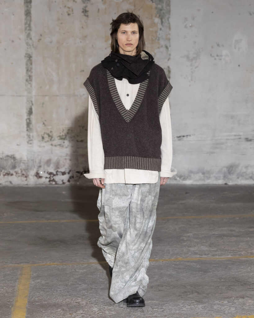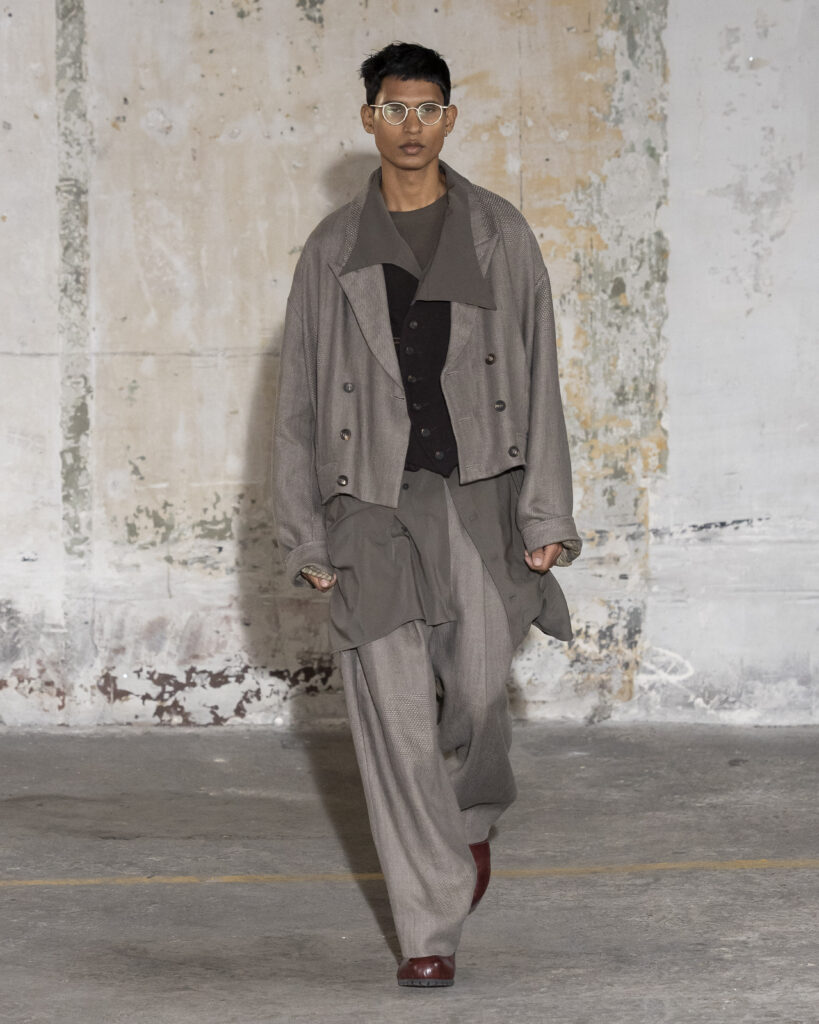 Pour la saison Automne-Hiver 2025-26, Ziggy Chen propose une collection intitulée « VOLEISURE », qui conjugue volonté et loisir, reflétant une attitude contemplative face à la rapidité du quotidien. Présentée au Grand Garage Haussmann, la collection offre une transition fluide entre le naturel et l’urbain, combinant des matières nobles et des coupes décontractées.
