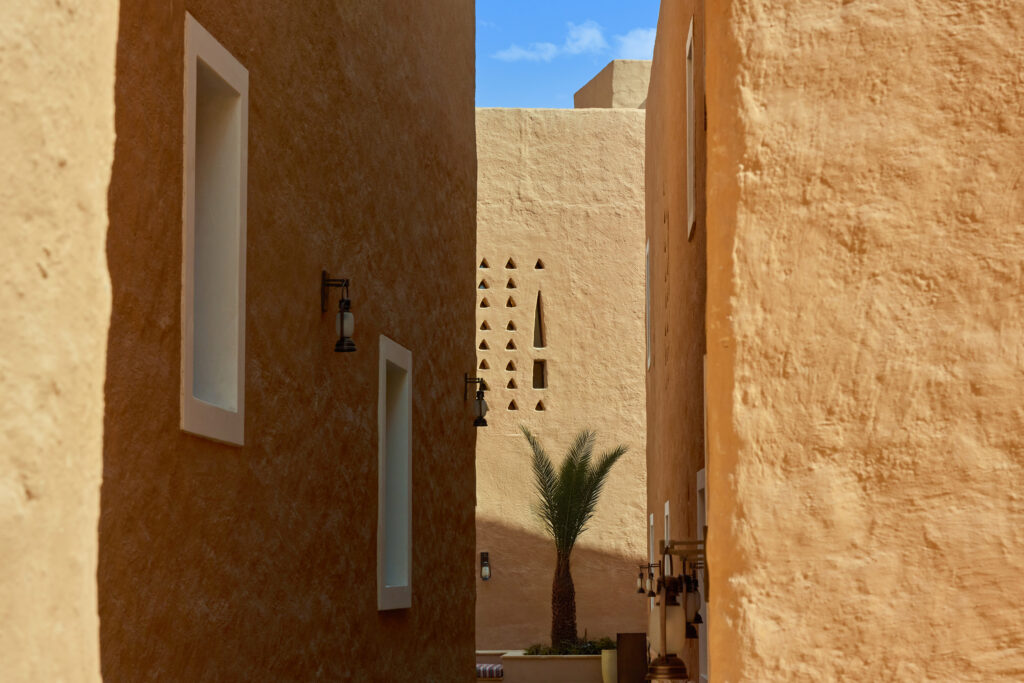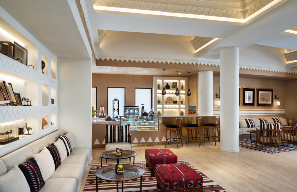 Conçu comme un hommage à l’architecture Najdi, Bab Samhan s’intègre harmonieusement au paysage historique de Diriyah. Avec ses murs en briques de terre, ses arches élégantes et ses cours ouvertes, l’hôtel invite à la convivialité et à l’échange. Chaque détail du design reflète l’essence de la région : des motifs géométriques aux œuvres d’art locales, en passant par des éléments inspirés du soleil et des paysages environnants.