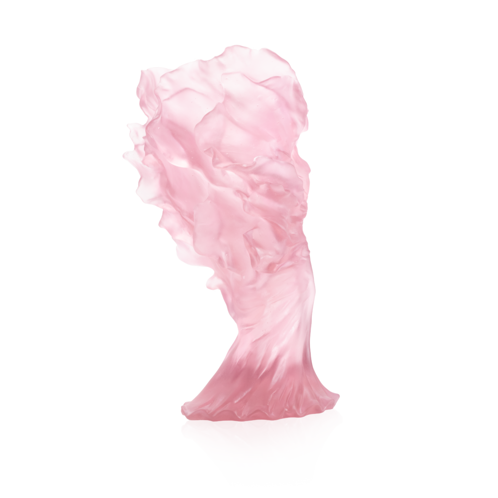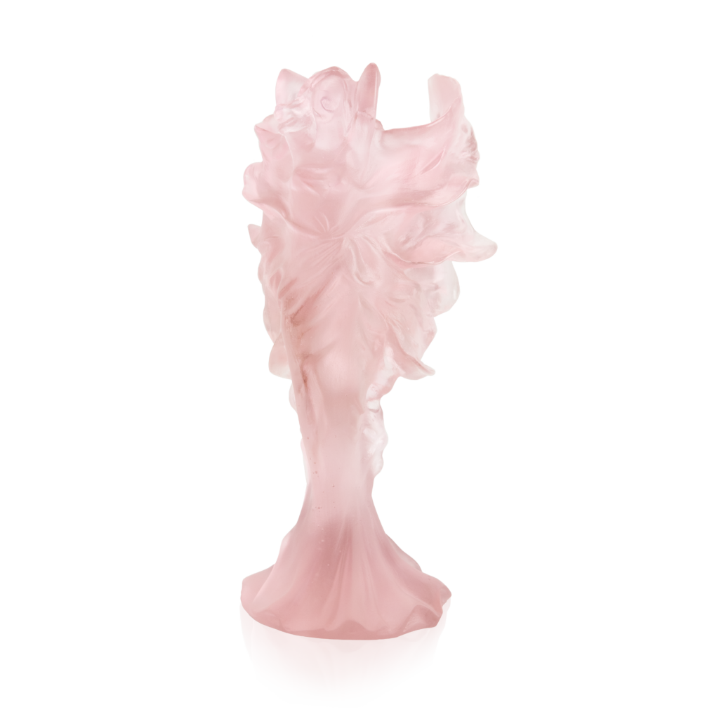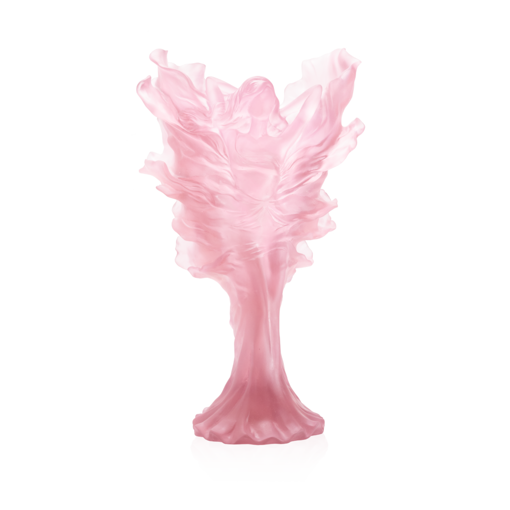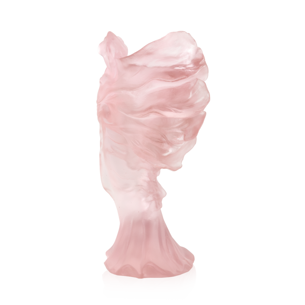 - Vase Magnum : Une œuvre monumentale en cristal rose, mettant en scène une muse féminine dans un drapé fluide.