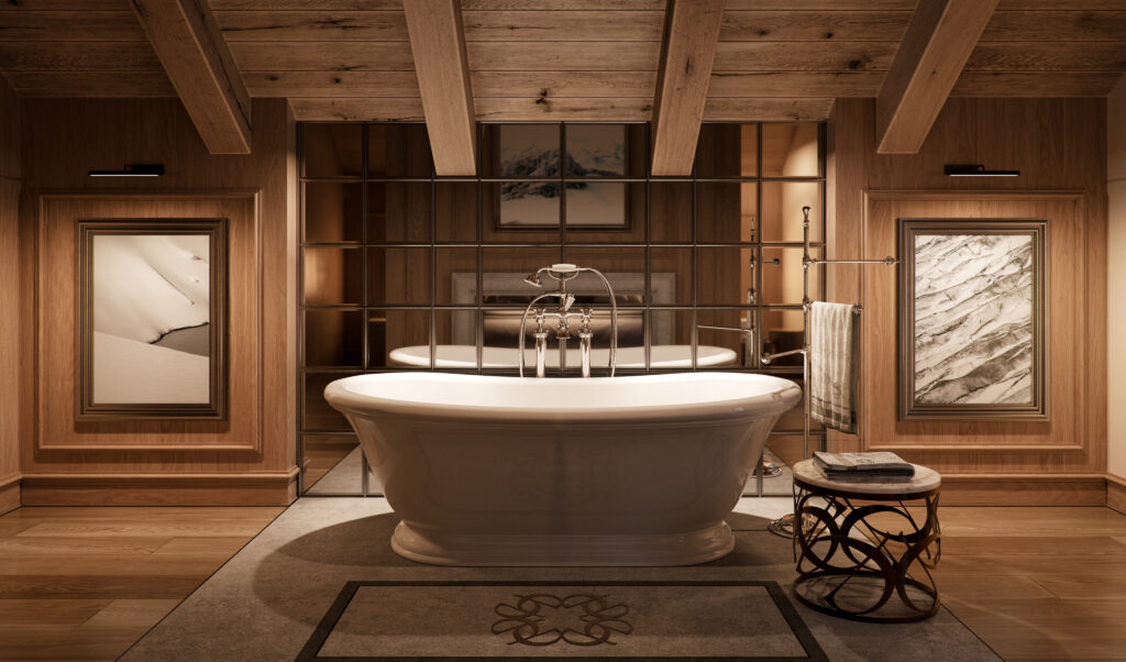 La rénovation orchestrée par A++ Group fusionne le charme du XVIIIe siècle avec l’esthétique élégante et contemporaine propre à ELIE SAAB. Les 19 résidences de luxe et 21 chambres d’hôtel sont enrichies de mobilier et de détails issus de la collection ELIE SAAB Maison. Matériaux somptueux, bois naturels et tissus riches créent une ambiance chaleureuse et sophistiquée, en parfaite harmonie avec l’environnement alpin.