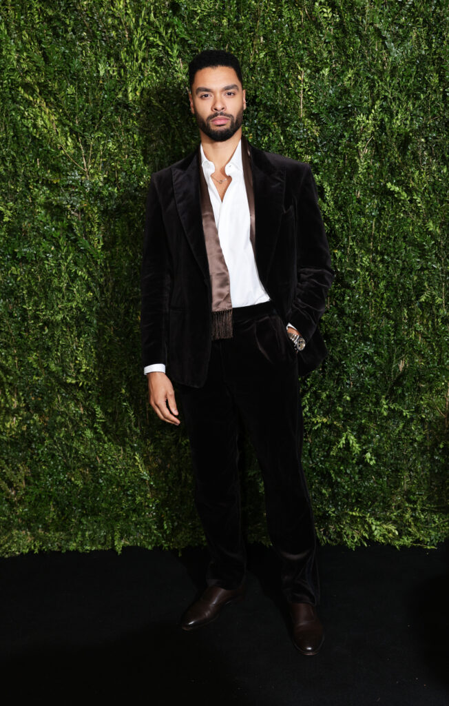 Fidèle à son image de gentleman contemporain, Regé-Jean Page joue avec les codes classiques de la mode masculine en leur insufflant une touche de modernité subtile. En choisissant une palette fumée et chocolatée, il s’éloigne du traditionnel noir et blanc tout en conservant une allure résolument chic et intemporelle.