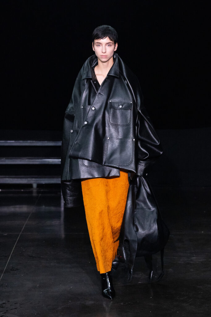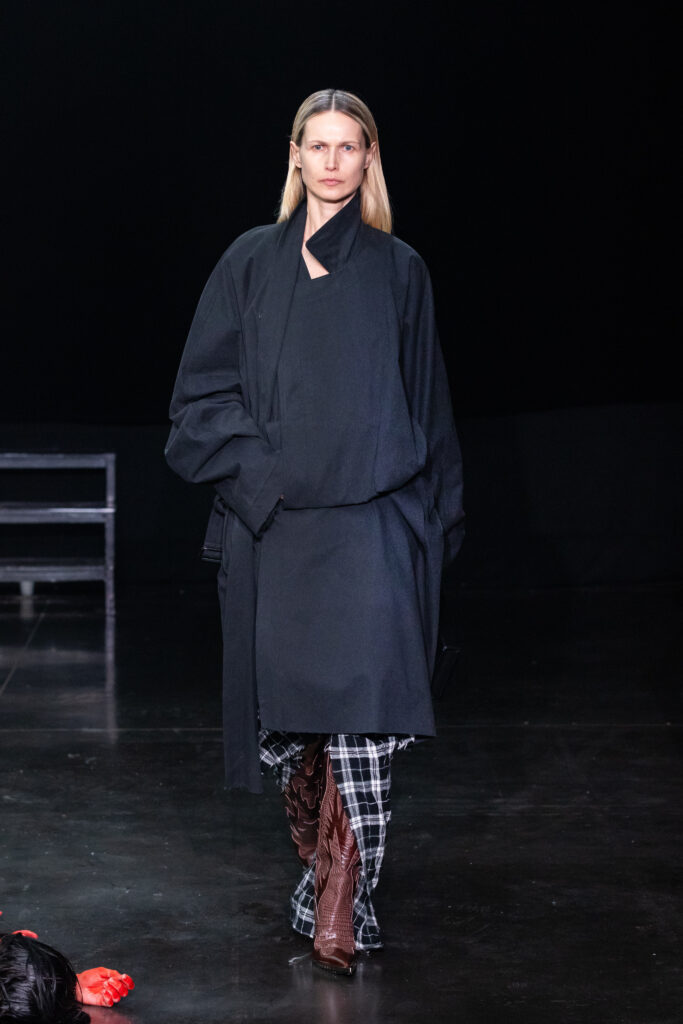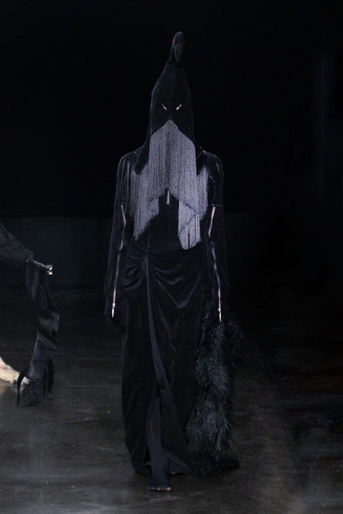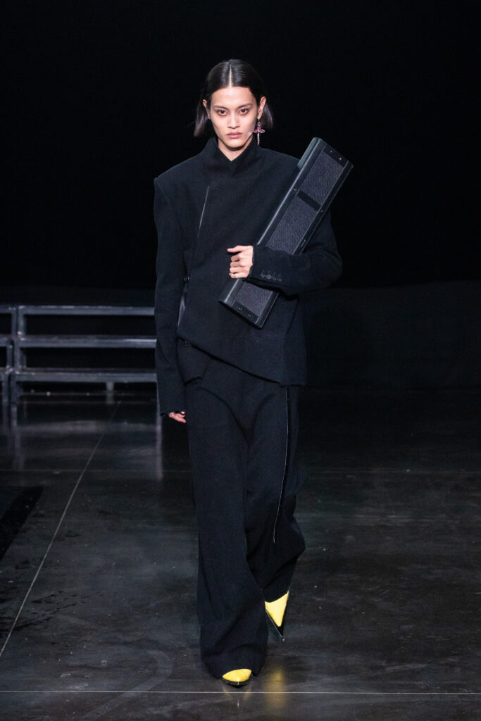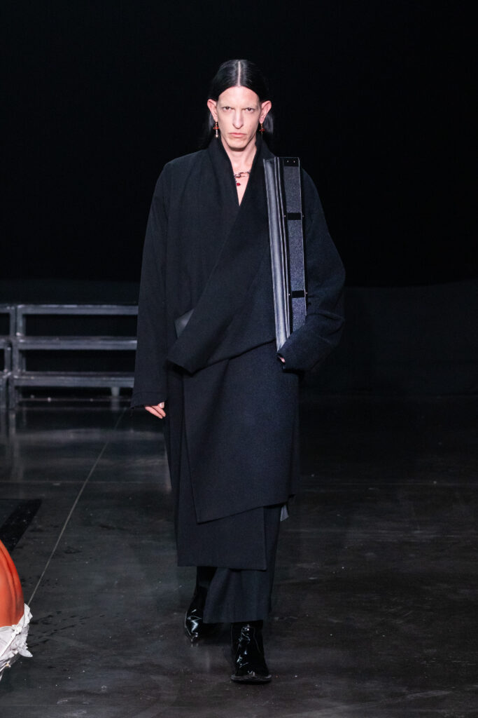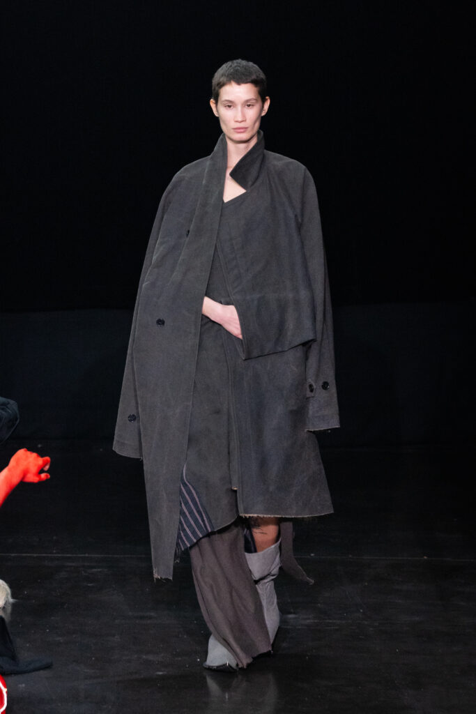 Dans une mise en scène où les danseurs peints en rouge évoquent la puissance primitive des rituels bouddhistes, SANKUANZ brouille les frontières entre art et vêtement. Accompagnée d’une bande-son expérimentale, cette collection devient un acte spirituel, une exploration où la mode devient un médium entre visible et invisible.
