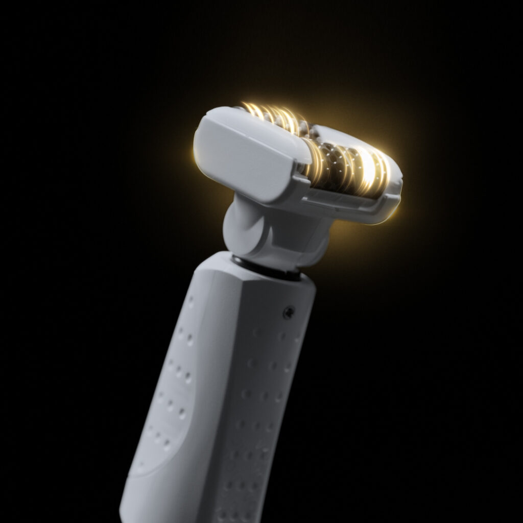 ICOONE agit sur les fascias, ces fines membranes du tissu conjonctif, grâce à une technologie brevetée Robodermie. Capable de délivrer jusqu’à 21 600 micro-stimulations par minute, cet appareil redessine les contours du visage, tonifie la peau et ravive son éclat.