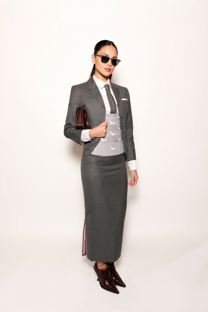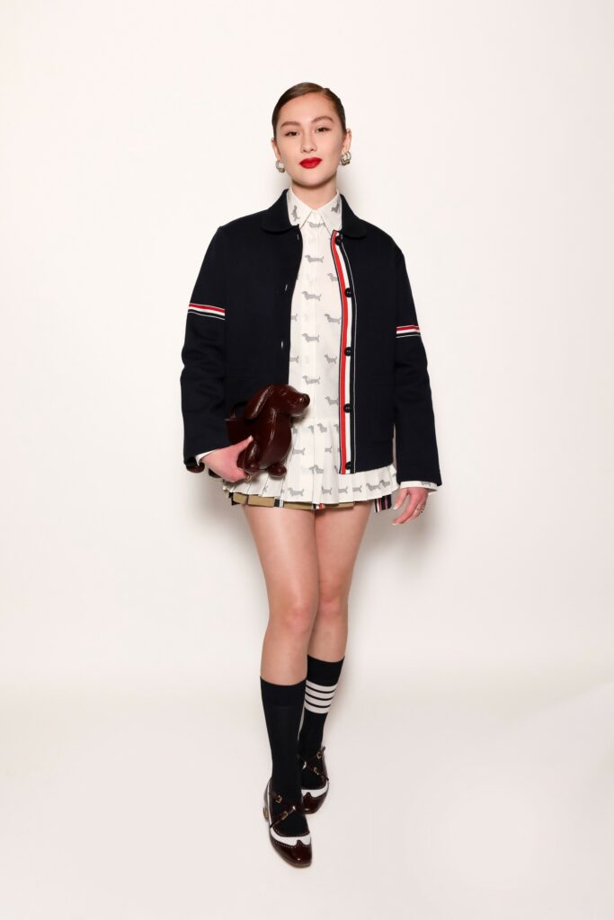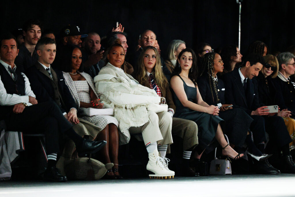 L’influence de Thom Browne dépasse largement le cadre de la mode, en témoigne la diversité des personnalités qui ont assisté au défilé. Acteurs, musiciens, mannequins et icônes du style ont répondu à l’invitation du créateur, affirmant l’attrait transversal et interdisciplinaire de sa vision.