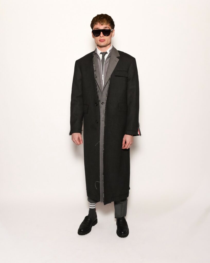 Fidèle à son univers, Thom Browne a présenté une collection où le savoir-faire tailleur s’est confronté à des volumes exagérés, des textures riches et des jeux de proportions. Toujours ancré dans sa vision du classique déconstruit, le créateur a exploré de nouvelles interprétations du costume, oscillant entre rigueur et fantaisie, entre discipline et excentricité.