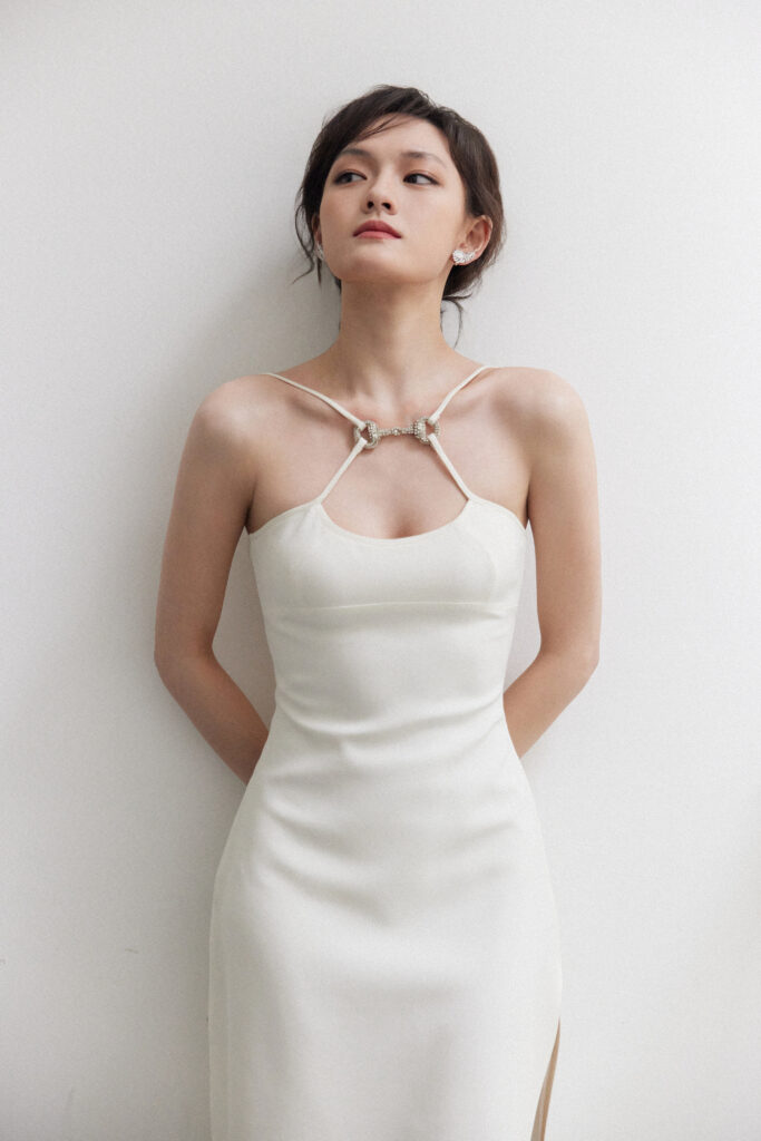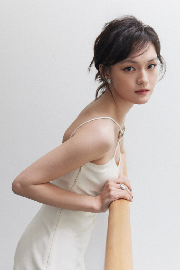 L’actrice taïwanaise Wen Qi a choisi de sublimer sa silhouette avec l’iconique motif Plume de Paon, une signature de la Maison Boucheron, où finesse et éclat se conjuguent en parfaite harmonie.
