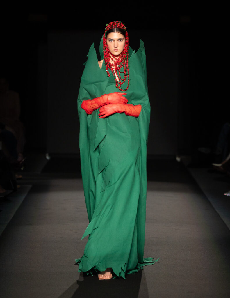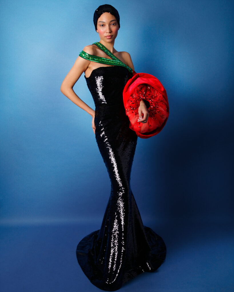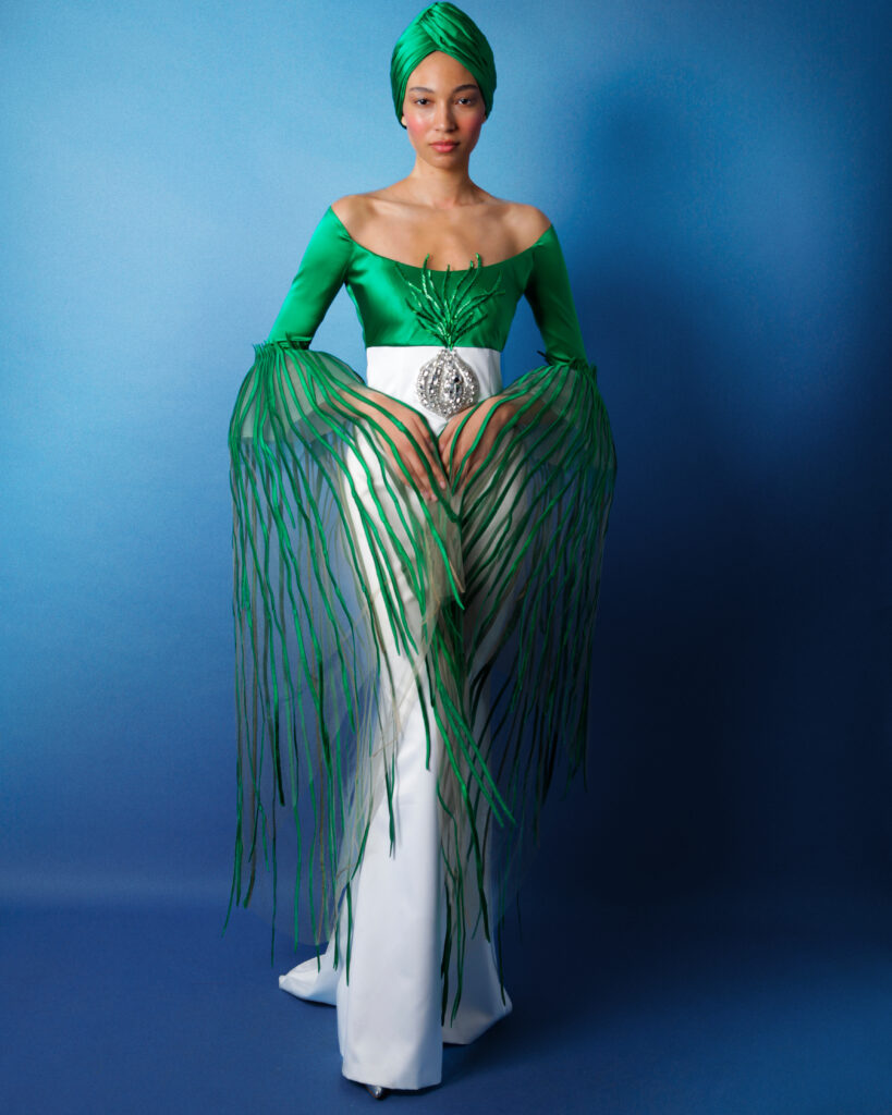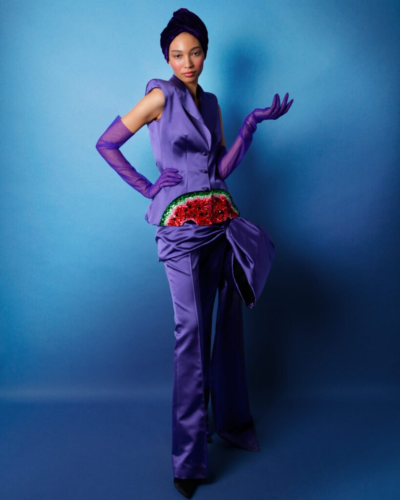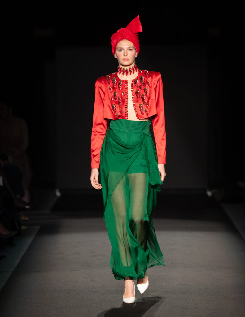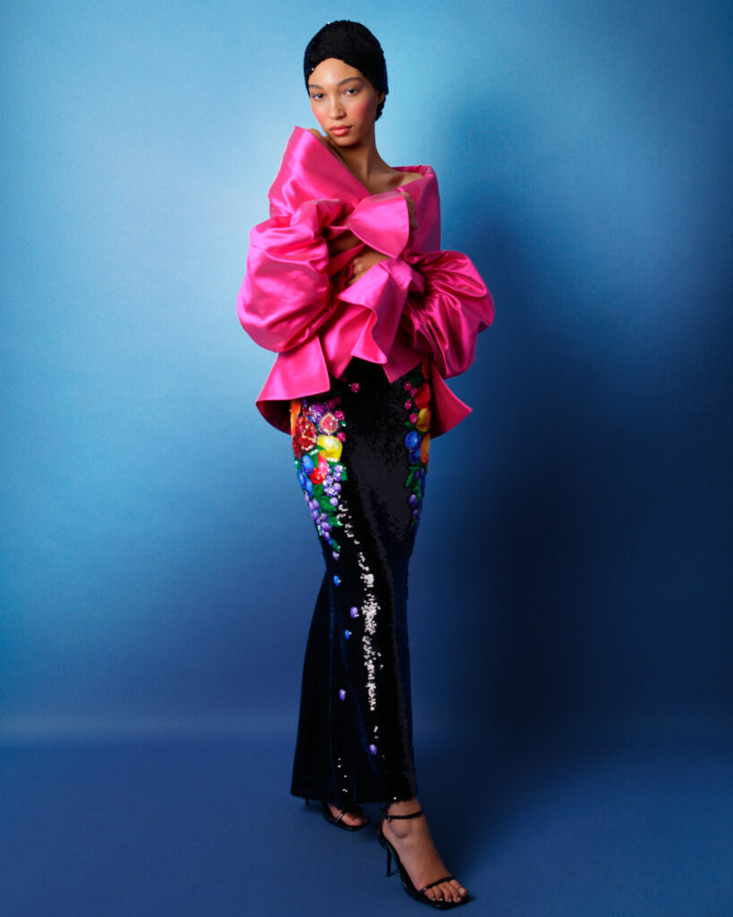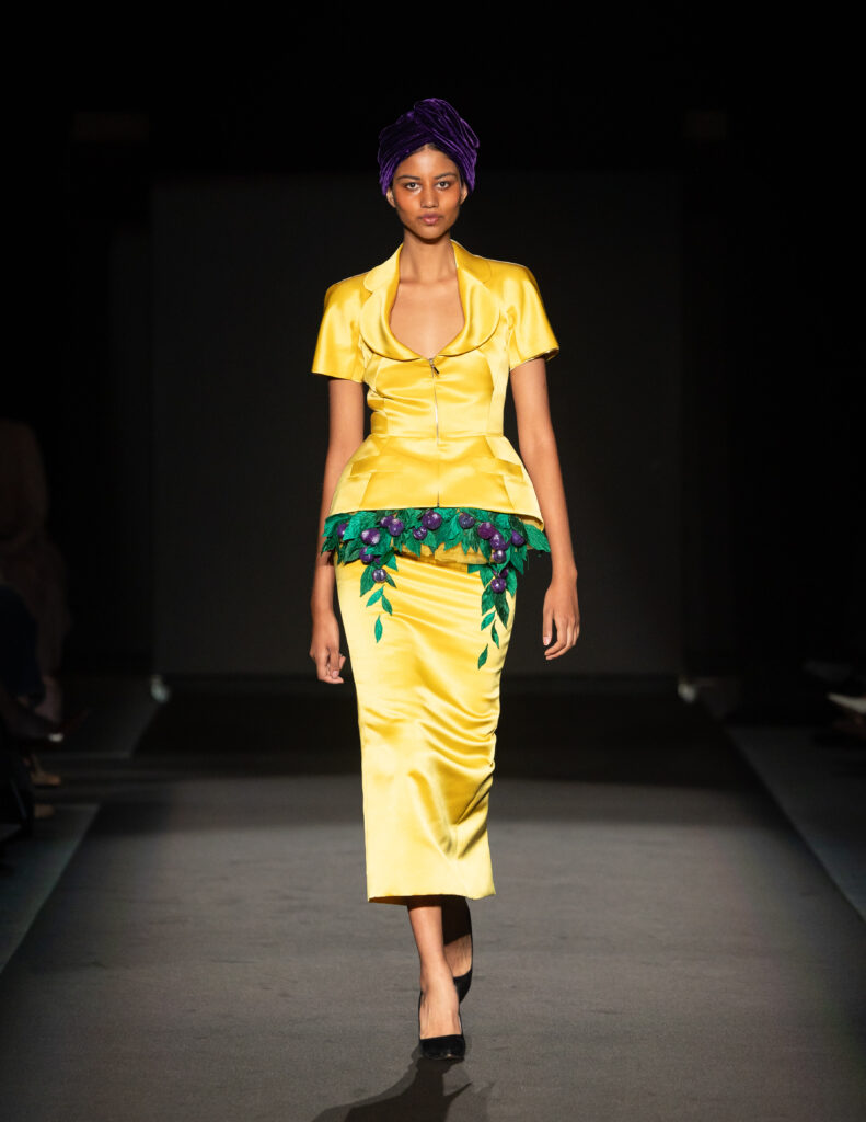 La collection met en avant les coupes emblématiques de la maison : robes fluides en soie et mousseline, tailleurs en velours et en soie tussah, sublimés par des imprimés peints à la main représentant baies, fruits et légumes. Chaque pièce célèbre la féminité sous toutes ses formes, reflétant l’élégance naturelle de celle qui la porte.