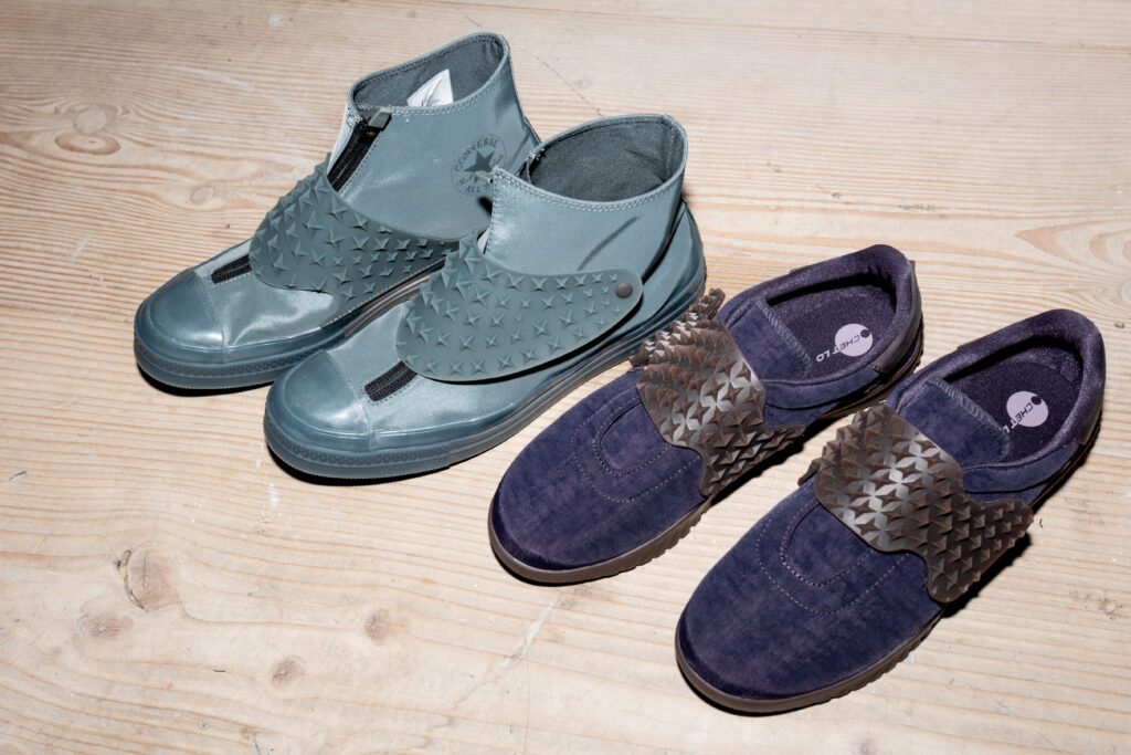 - Chuck 70, icône indémodable, réimaginée par Chet Lo à travers des textures innovantes.