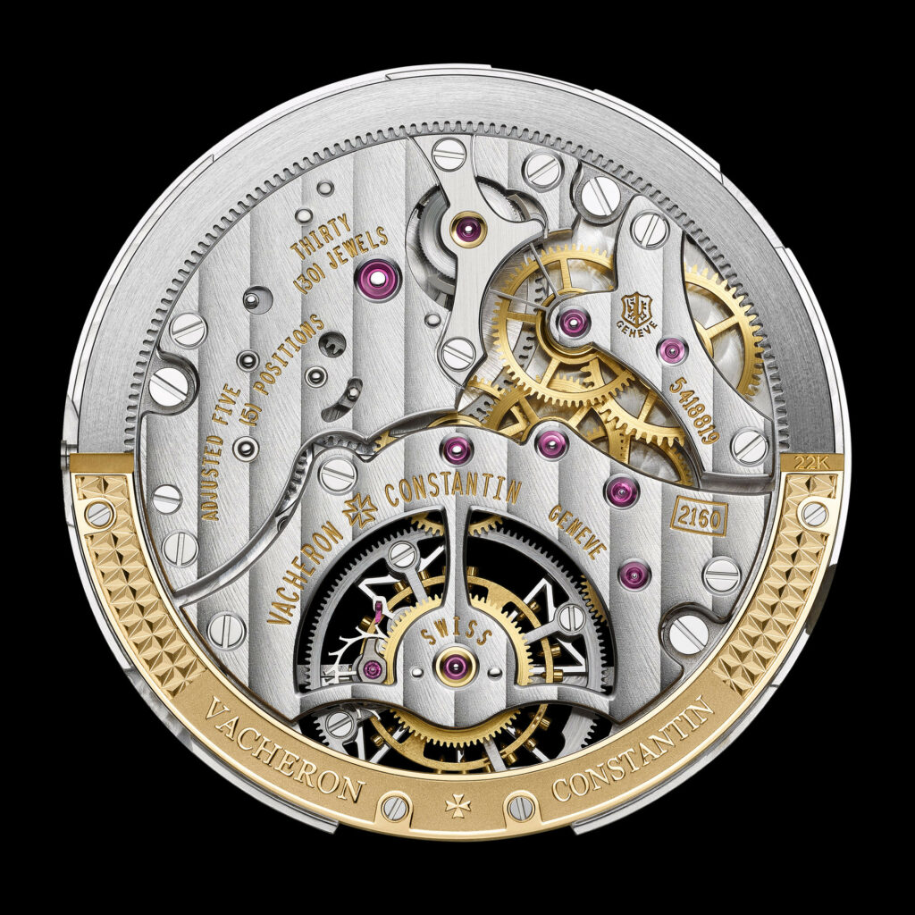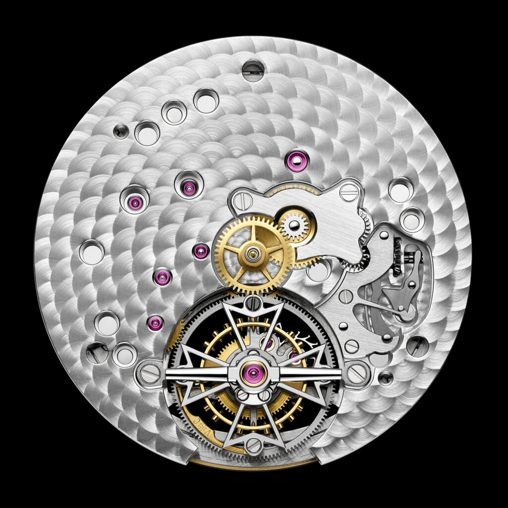 Mouvement : Le calibre 2160, un tourbillon ultra-plat avec remontage automatique, intègre une masse oscillante périphérique.