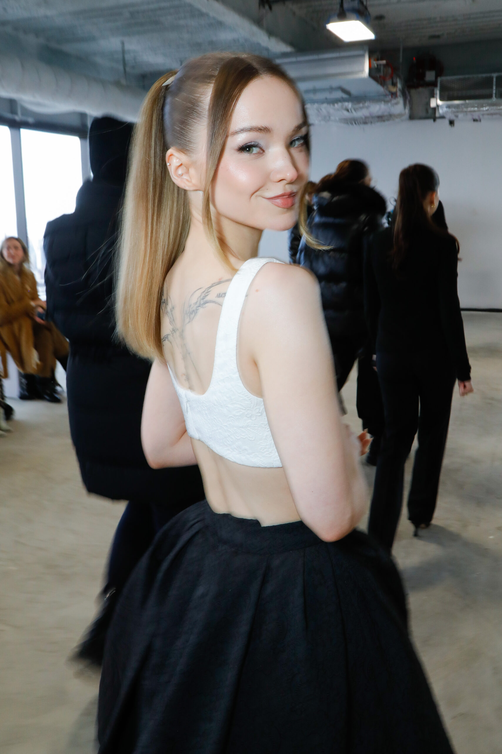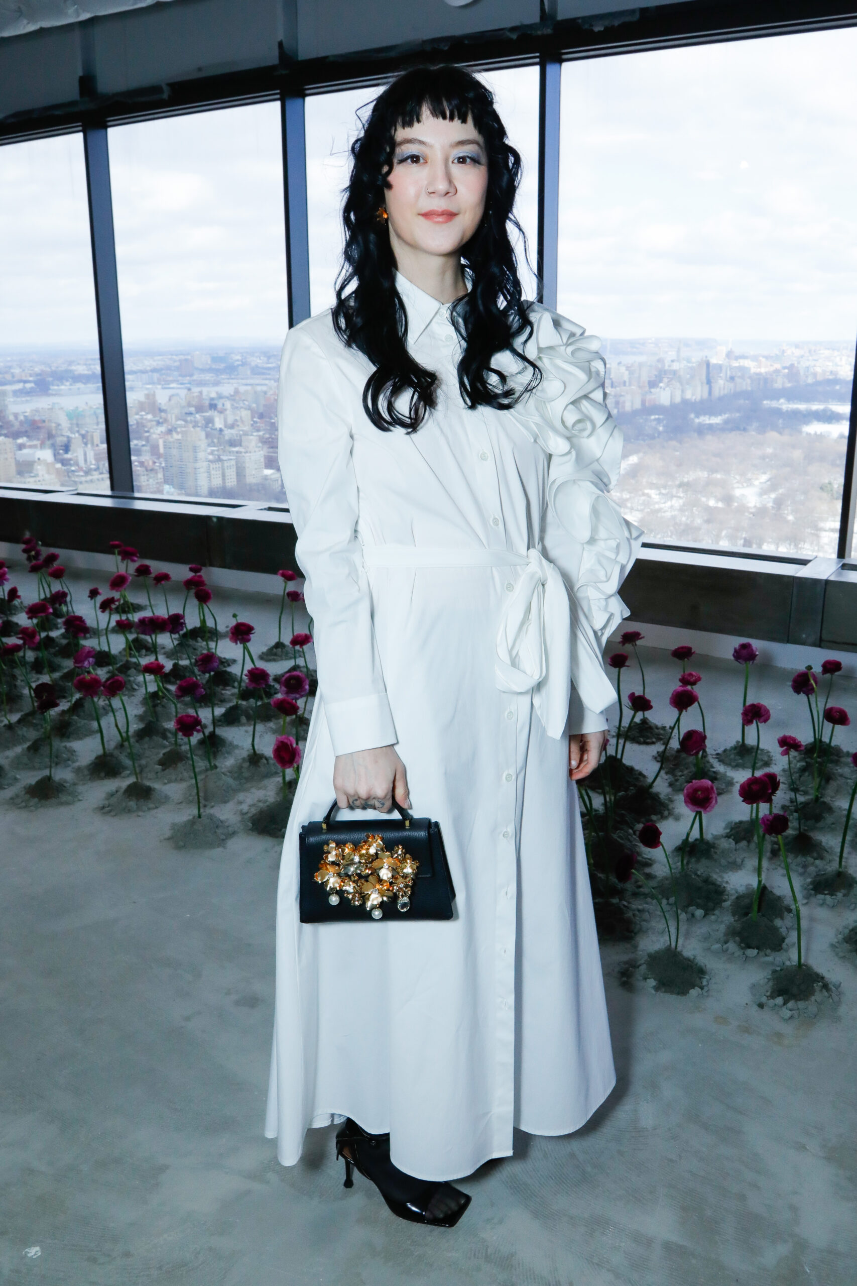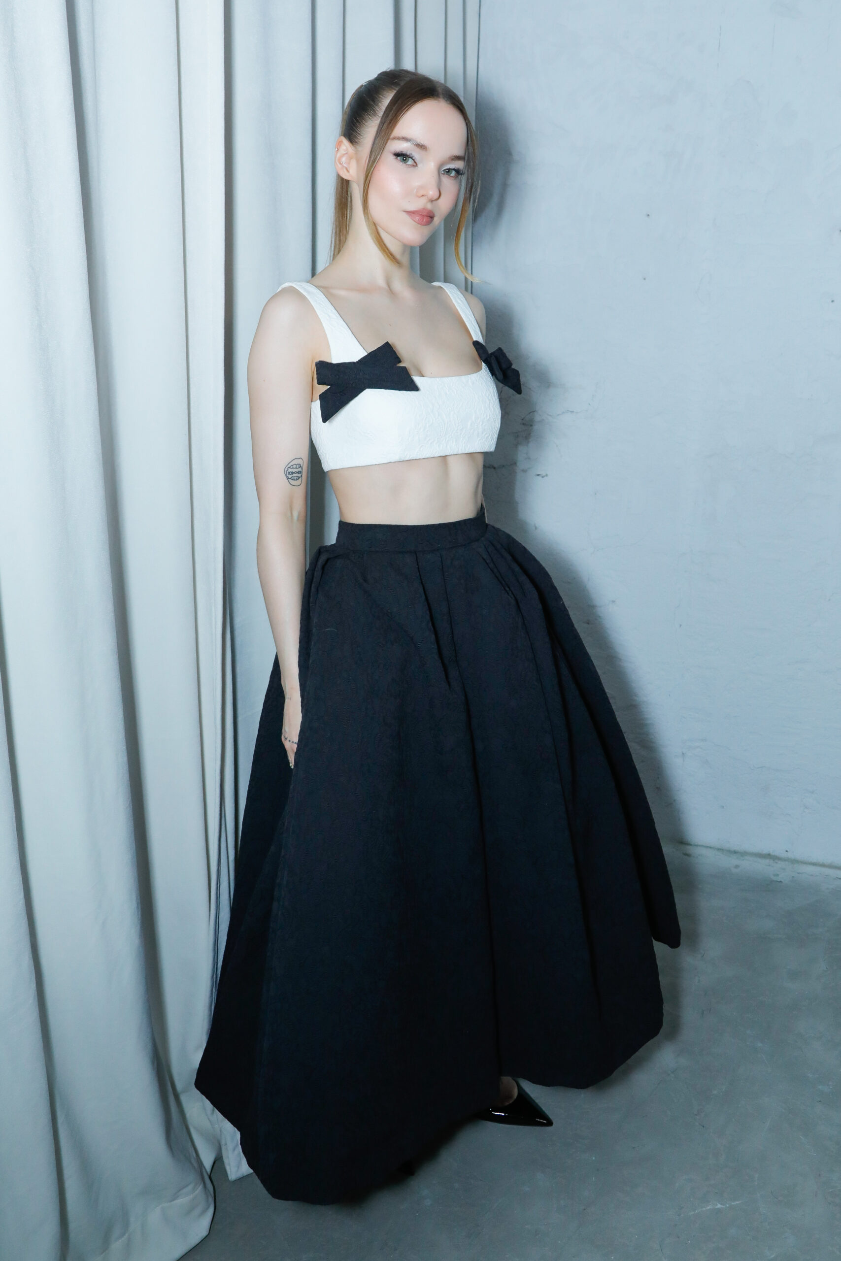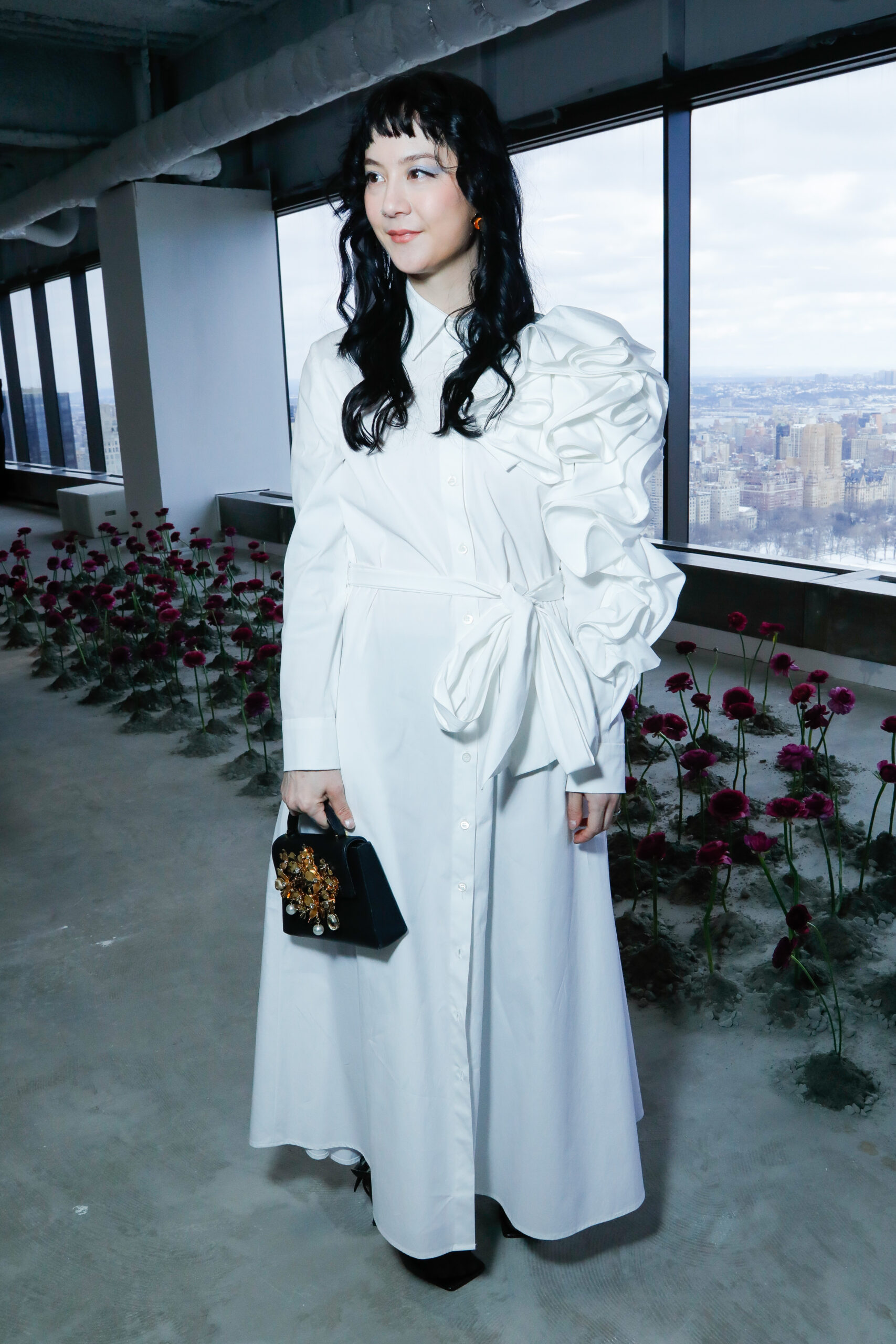 - Rosettes de soie sculpturales : façonnées à la main, elles apparaissent sur les hanches des robes, sur des jupes volumineuses ou encore en bustier dramatique, en hommage aux pétales éphémères d’une fleur qui s’ouvre.