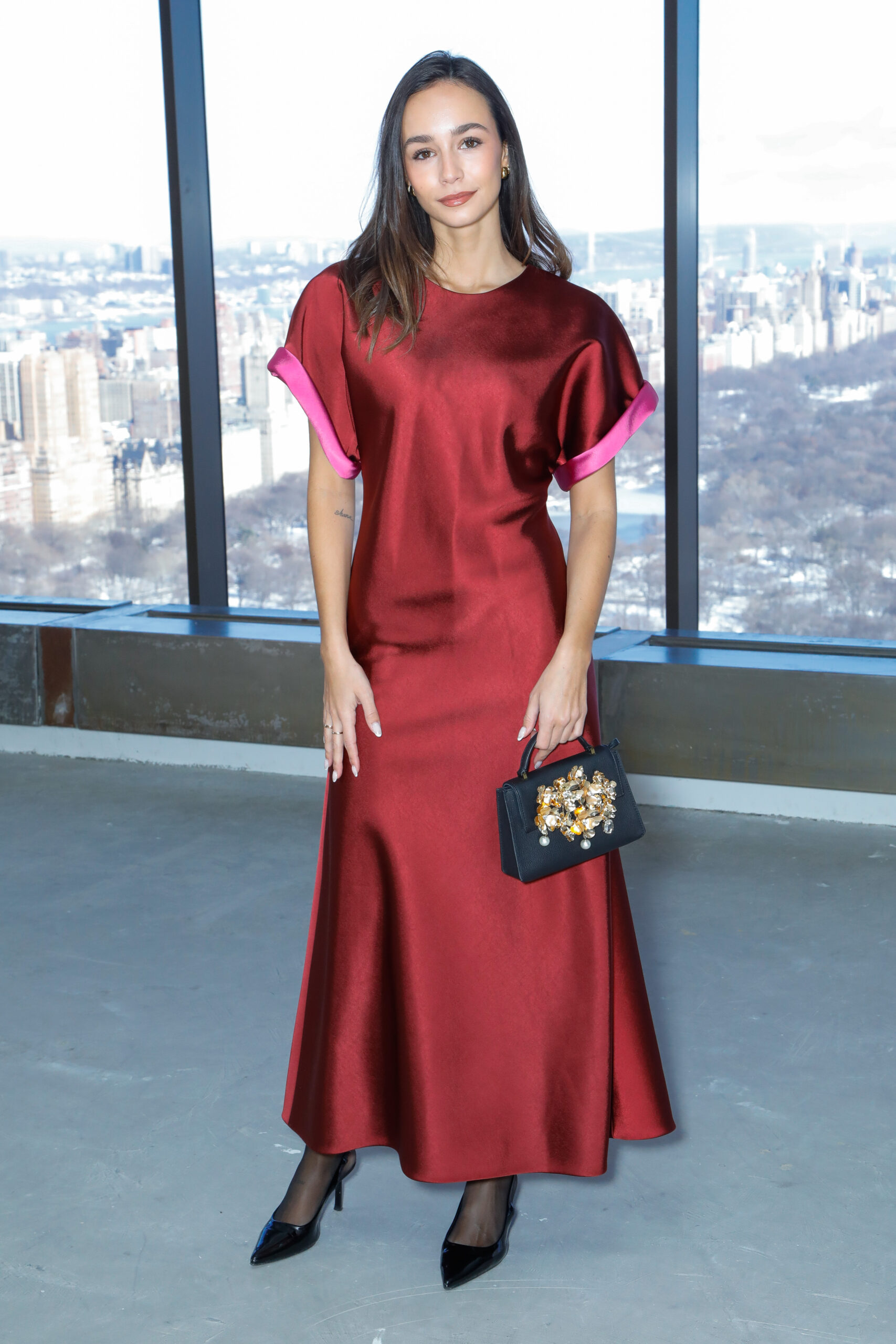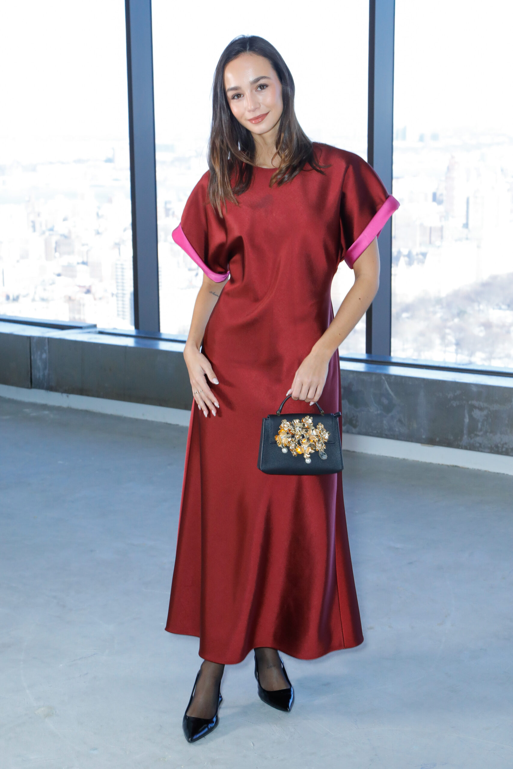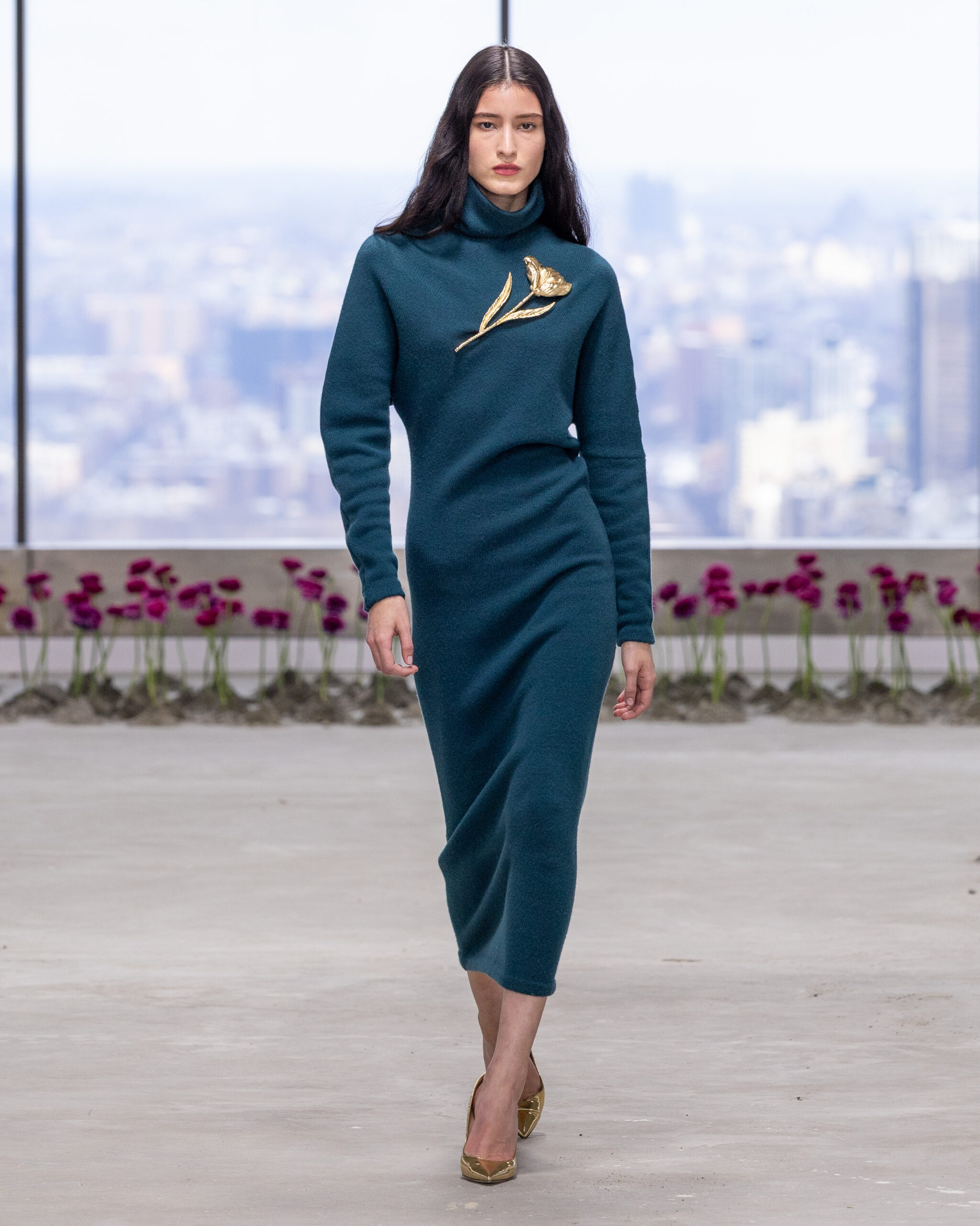 - Jacquard en lurex fleuri : il éclot sous forme de robes colonnes sculpturales et de jupes crayons impeccablement coupées, capturant la lumière avec un éclat subtil.