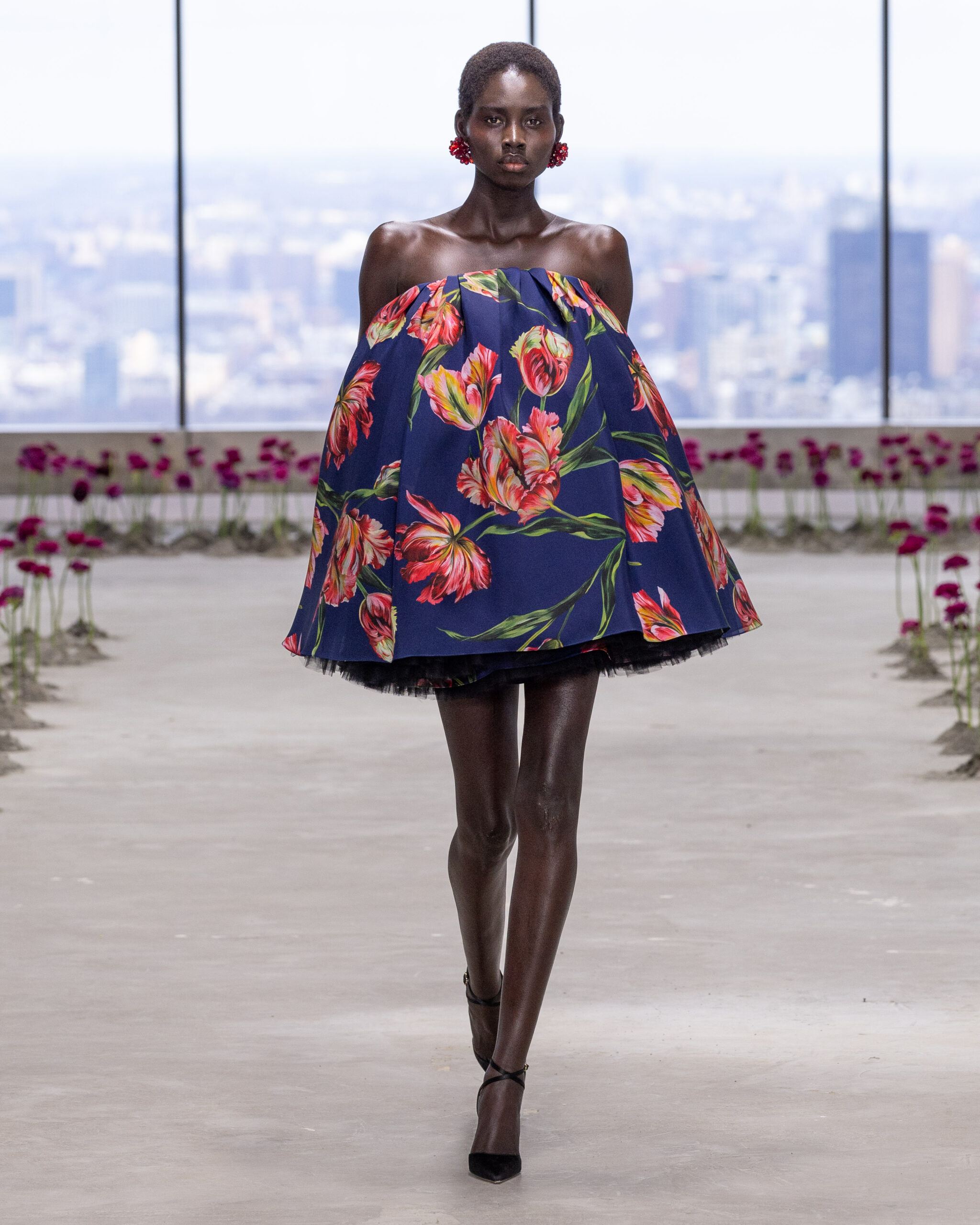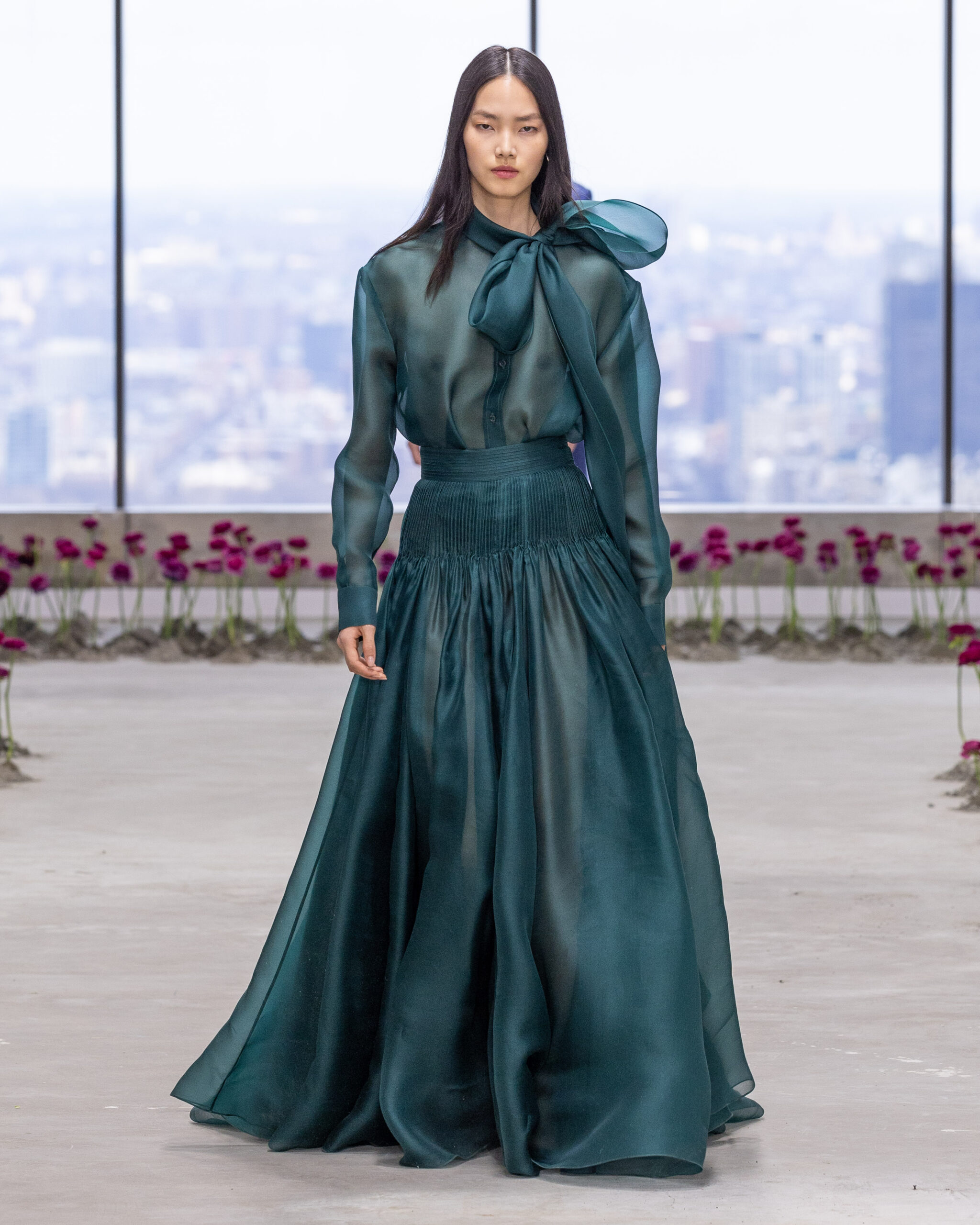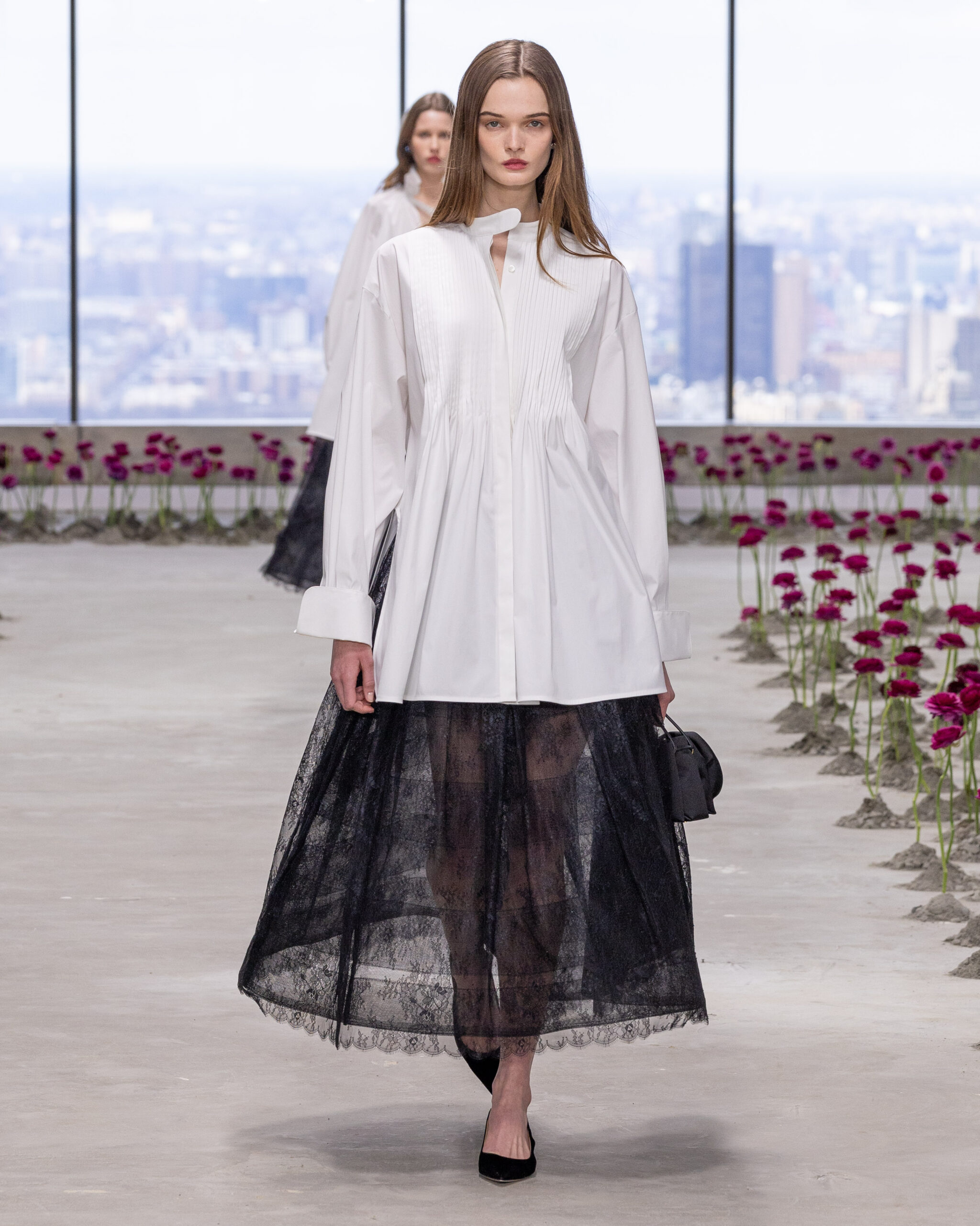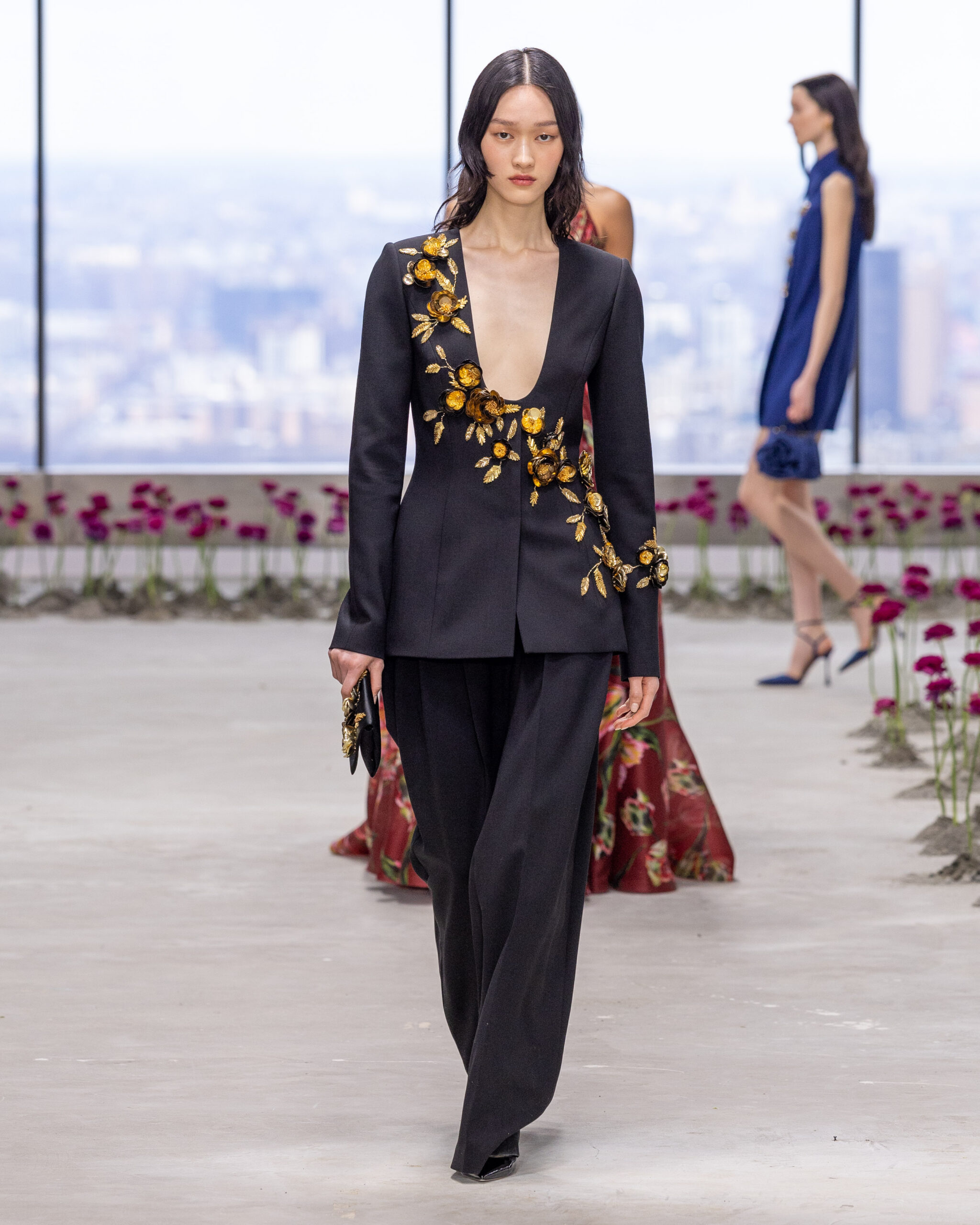 Comme dans un tableau impressionniste, la collection oscille entre structure et fluidité, entre précision du tailoring et exubérance florale.