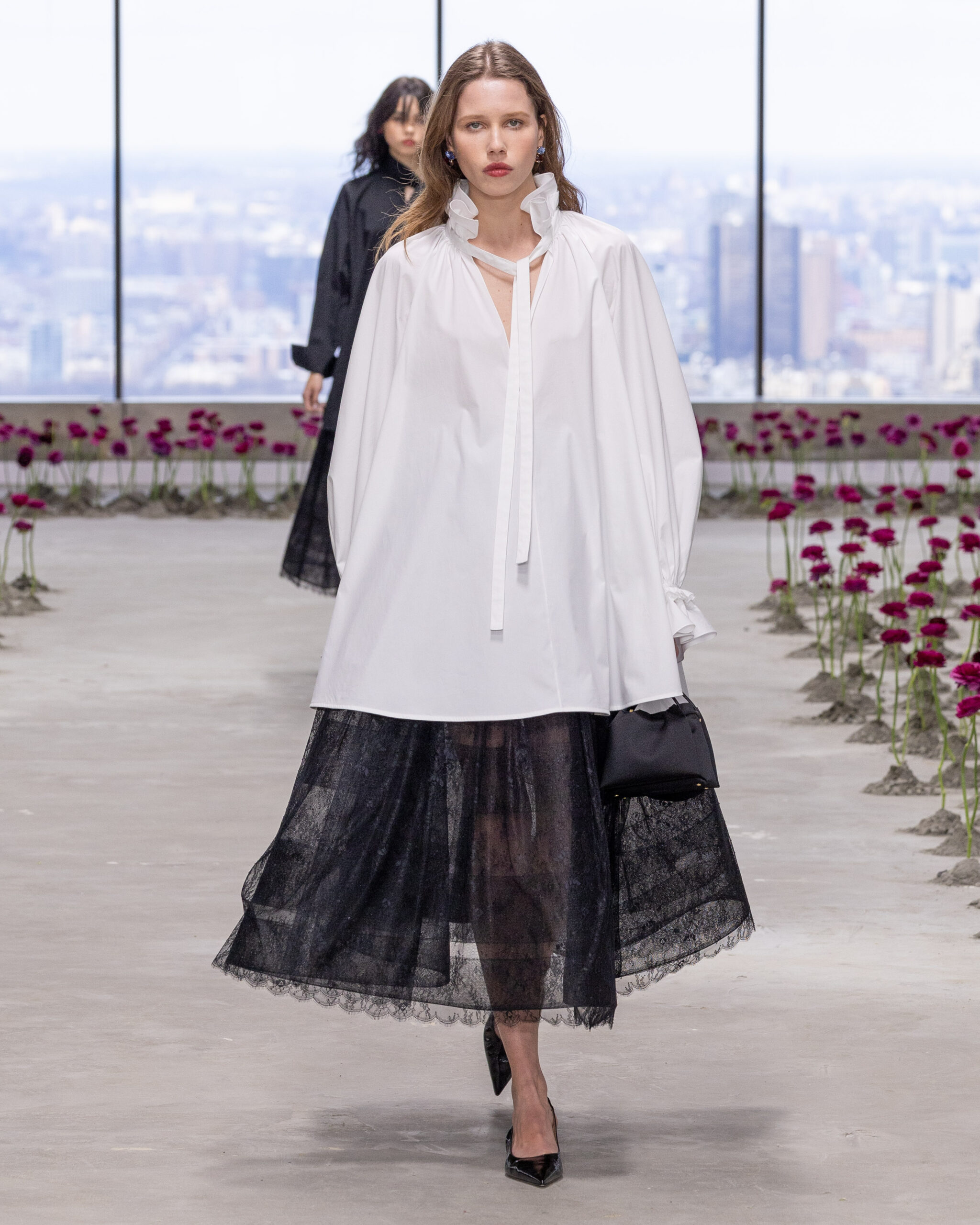 (L-R) A model is seen on the catwalk at the Monse fashion show during New York Fashion Week, February 9, 2025.