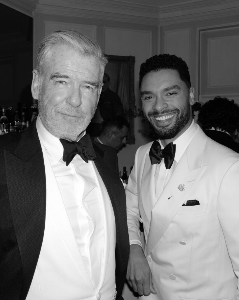 La soirée a été marquée par la présence de deux figures du grand écran : Pierce Brosnan, légende du cinéma et incarnation du gentleman intemporel, et Regé-Jean Page, étoile montante dont l’élégance et le charisme ne cessent de captiver l’industrie.