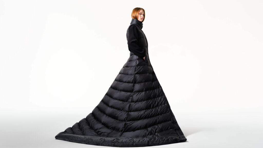 La Verone Opus redéfinit le concept de la doudoune avec une silhouette féminine extra-longue, réalisée en nylon enduit à la fois doux et durable. Offerte en noir et blanc monochromes, elle fusionne fonctionnalité et raffinement, avec des manches amovibles qui permettent de la transformer en gilet. Ce modèle s’adresse à celles qui cherchent une pièce alliant praticité hivernale et allure sophistiquée.