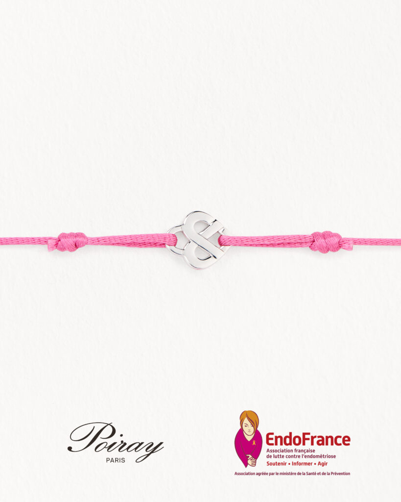 Pour marquer cette collaboration exceptionnelle, la Maison Poiray décline son emblématique bracelet « Cœur Entrelacé » aux couleurs spécialement imaginées pour EndoFrance. Ce bijou, symbole du lien et de la continuité, se pare d’un cordon rose pour évoquer la douceur et la force de la cause. Du 1er au 31 mars 2025, 20 % des ventes de ces bracelets en argent seront reversés à l’association. L’opération, déployée dans les grands magasins Printemps et Bon Marché Rive Gauche, ainsi que dans les boutiques Poiray à Lyon, Toulouse, Bordeaux et en ligne, incarne la volonté de la Maison Poiray d’utiliser le luxe et le savoir-faire artisanal au service d’une grande cause de santé publique.
